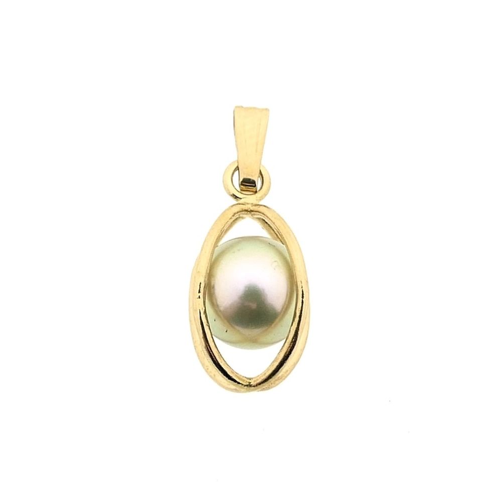 Gold abstract pendant set with a cultured pearl. A modern and classic pendant crafted from 14-karat yellow gold (585/1000).