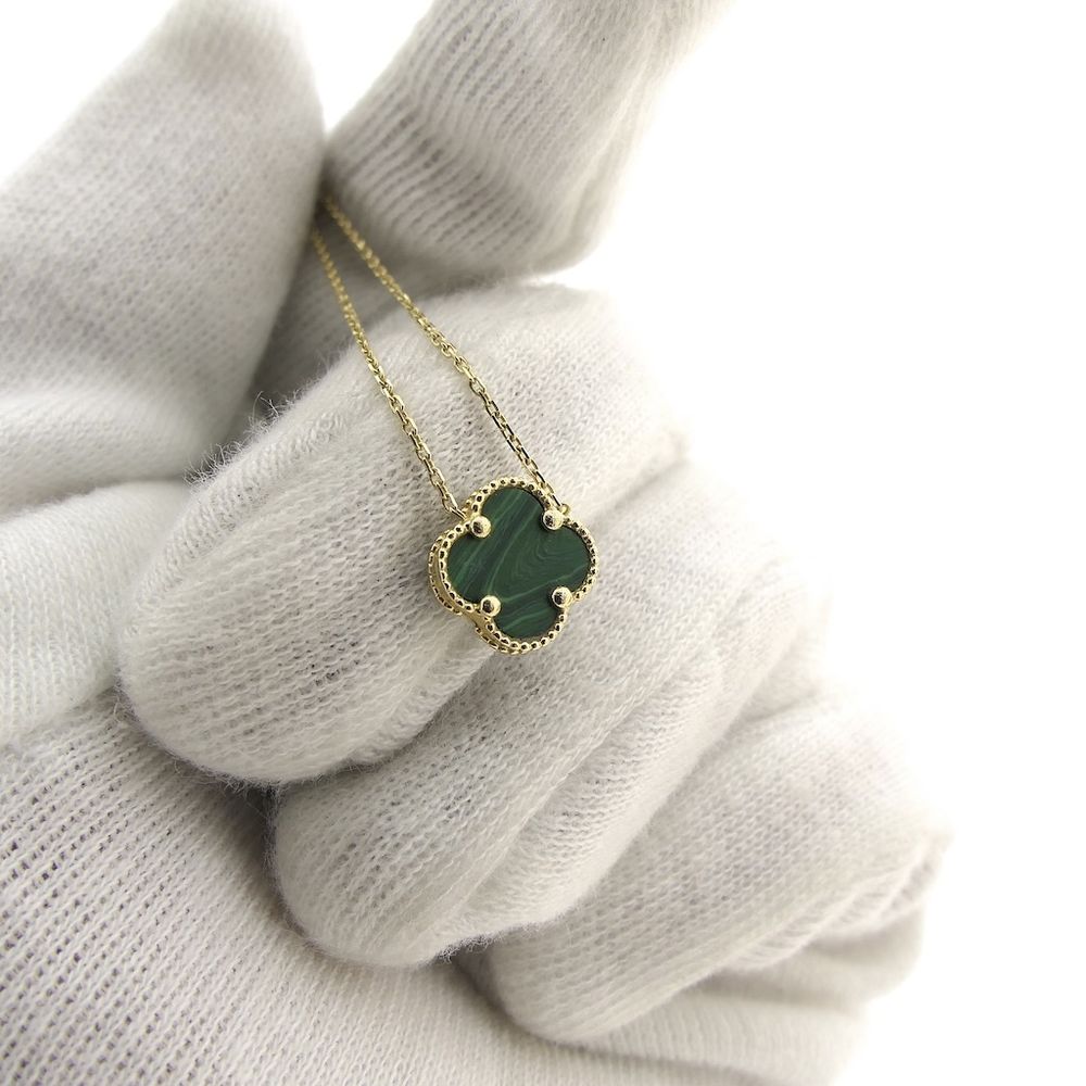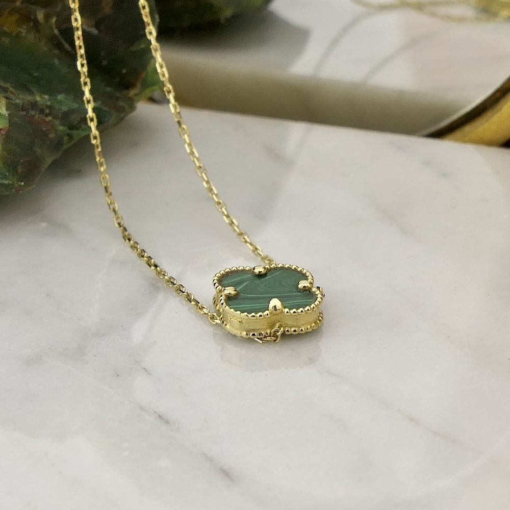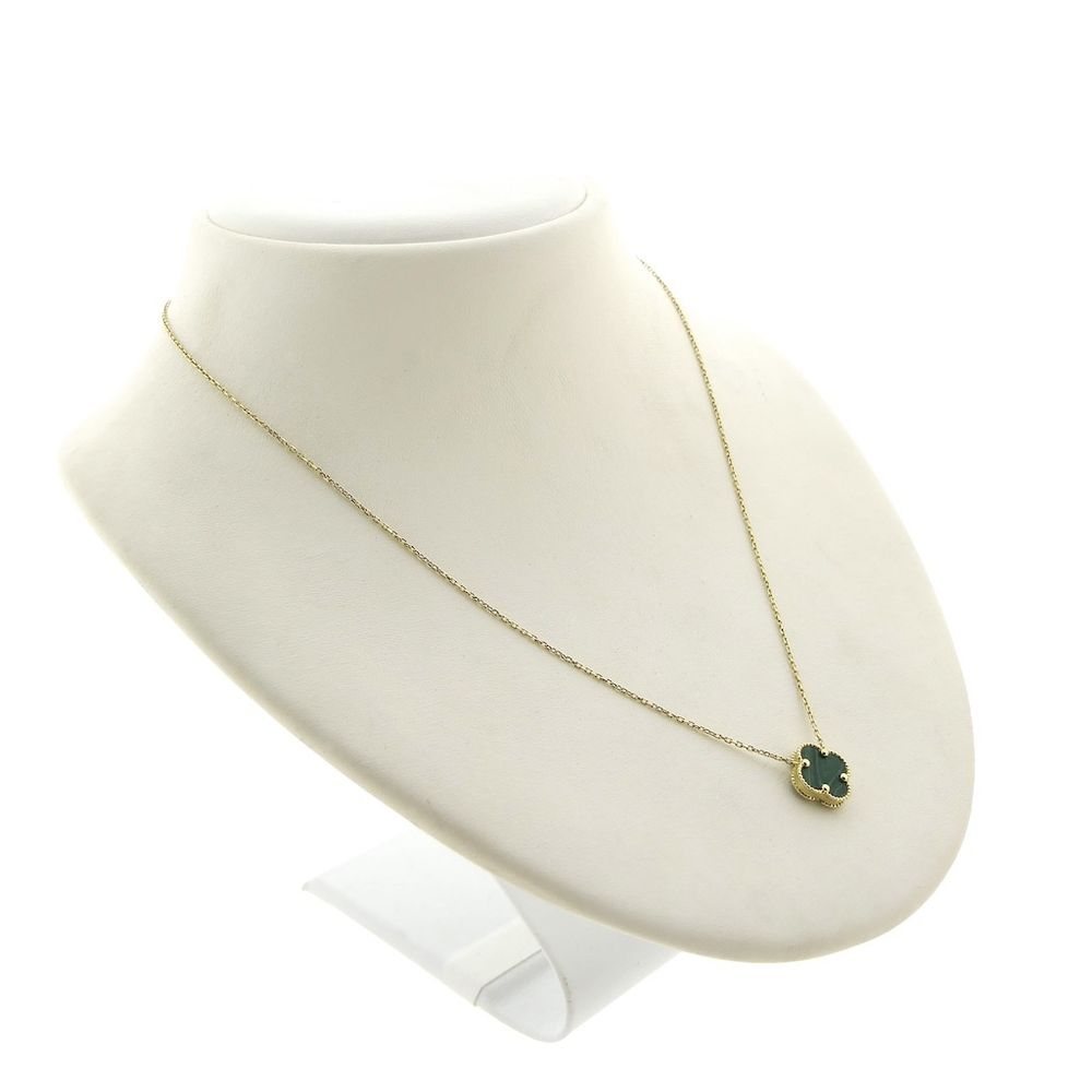 Gold anchor link necklace with a fixed pendant; four-leaf clover | 42 cm