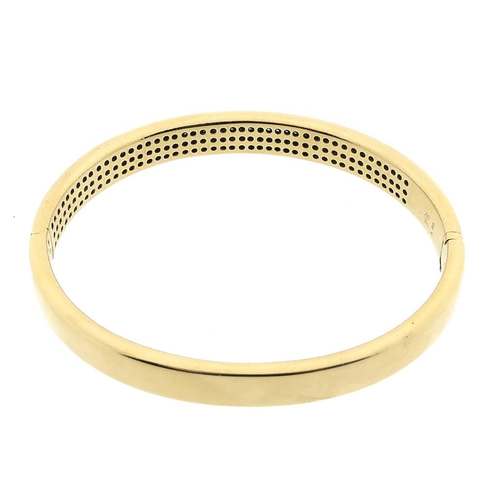 Gold bangle bracelet with natural round brilliant-cut diamonds from the Belgian brand Casa Gi. The bracelet is set with stunning diamonds arranged in five rows. Crafted from 18-karat yellow gold (750/1000), it has a luxurious appearance.