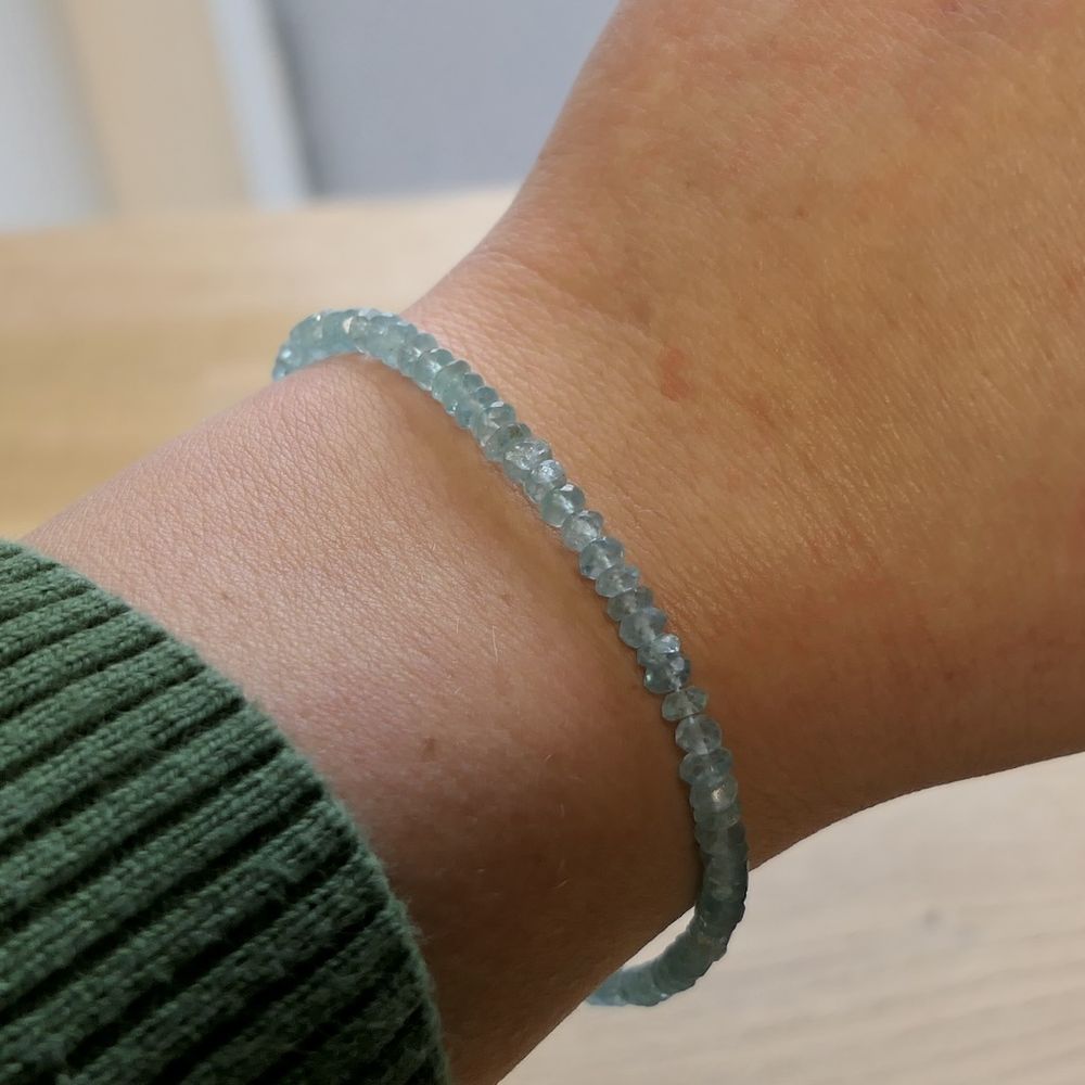 Gold beaded bracelet with aquamarine