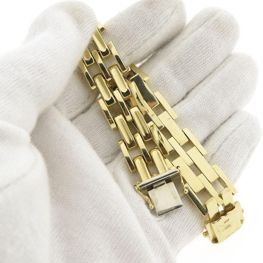 Gold Bismarck link bracelet. The links are solid and move smoothly. The two middle links are matted, and the rest have a smooth finish. A beautiful women's jewelry with a striking and luxurious look. The bracelet is crafted from 14-karat yellow gold (585/1000).