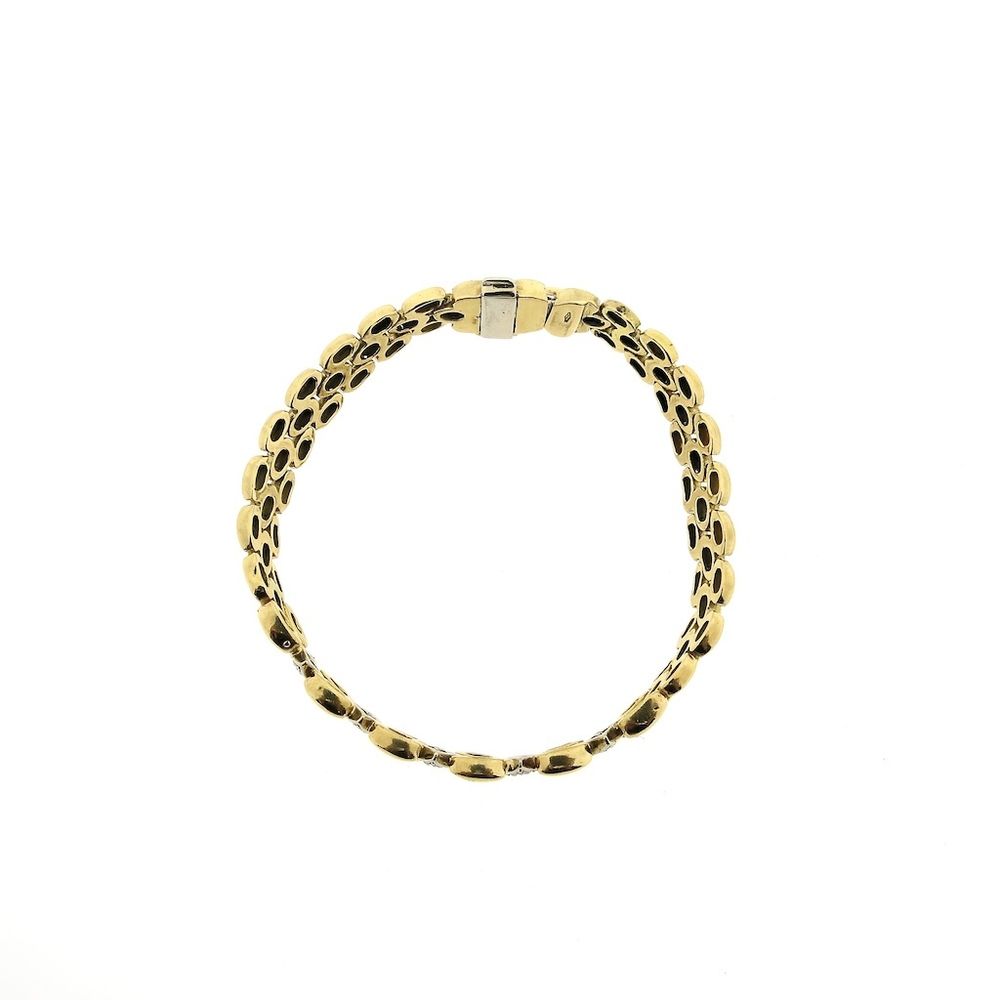 Gold bracelet made with Bismarck links and diamonds. The diamonds are set in white gold. The chain closes with a box clasp and is crafted from 18-karat yellow gold (750/1000).