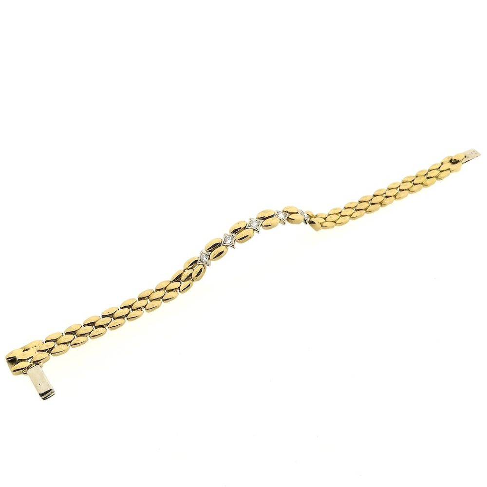 Gold Bismarck link bracelet with 0.4 ct diamond.
