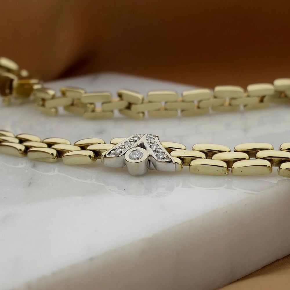 Gold Bismarck link necklace with diamonds; 0.15 ct.