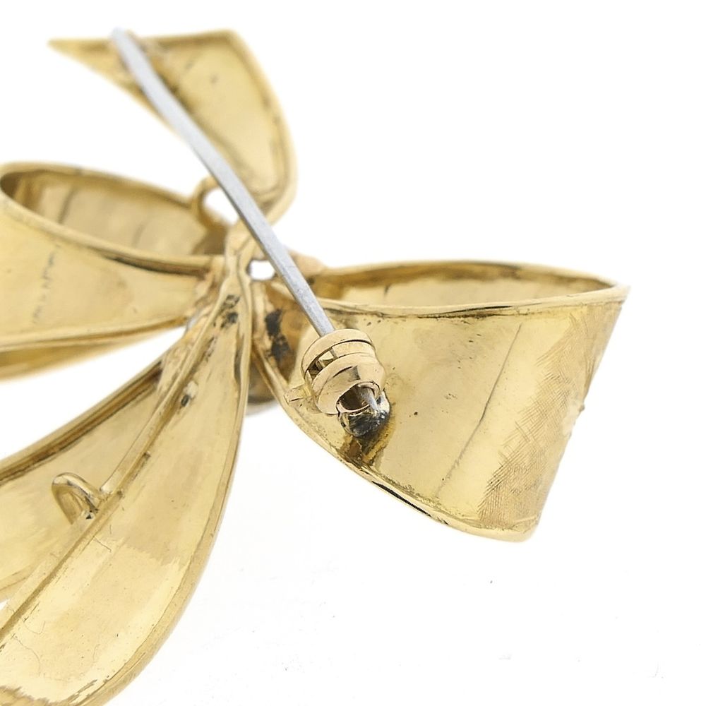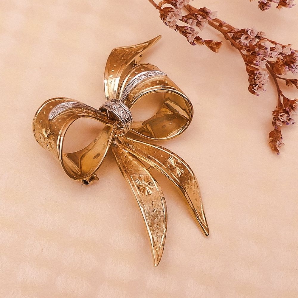 Gold brooch in the form of a bow with diamonds; 0.035 ct.