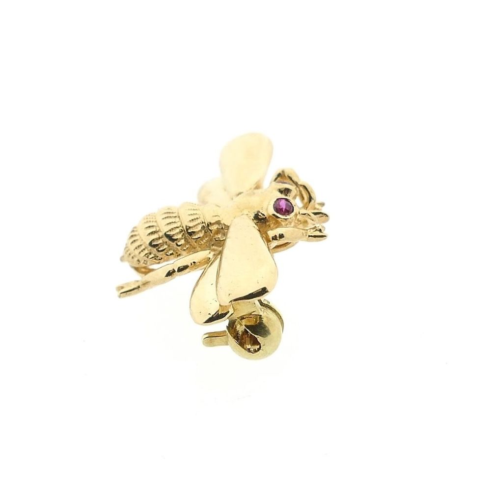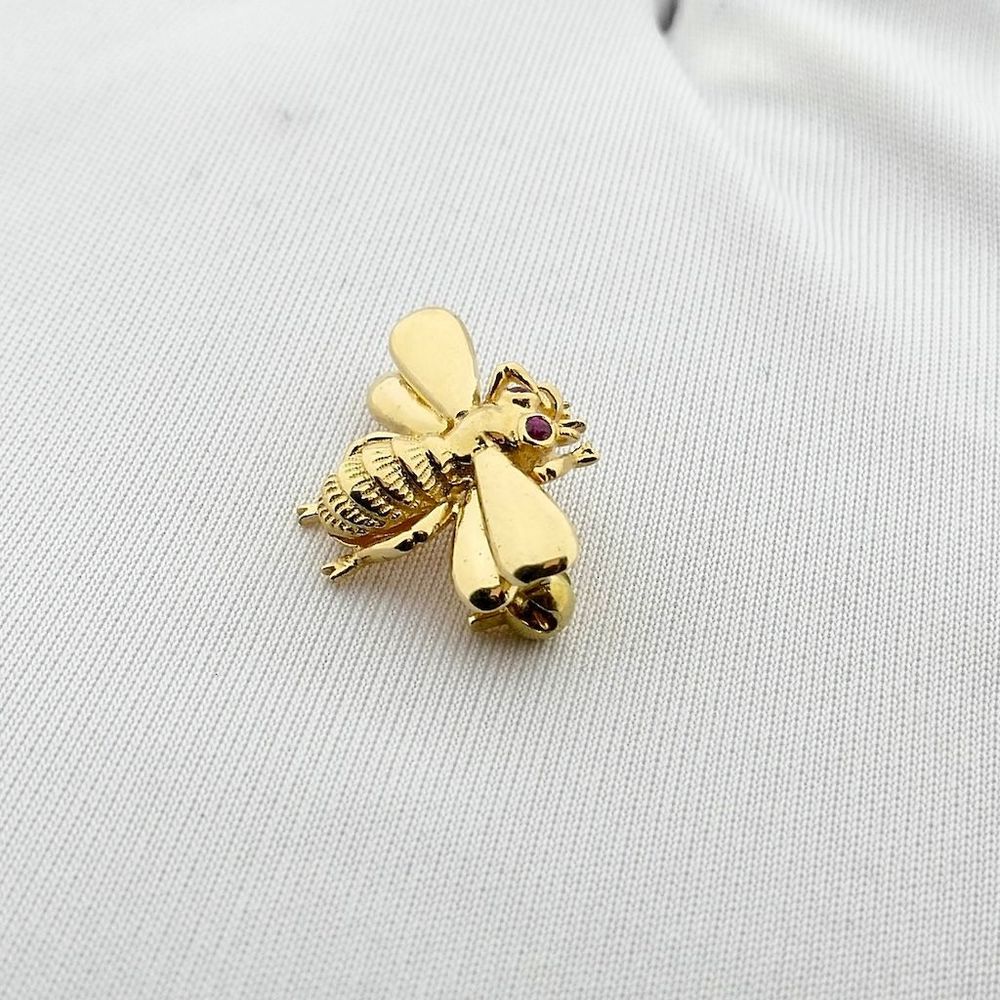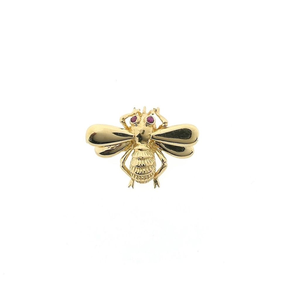 Gold brooch of a bee with ruby