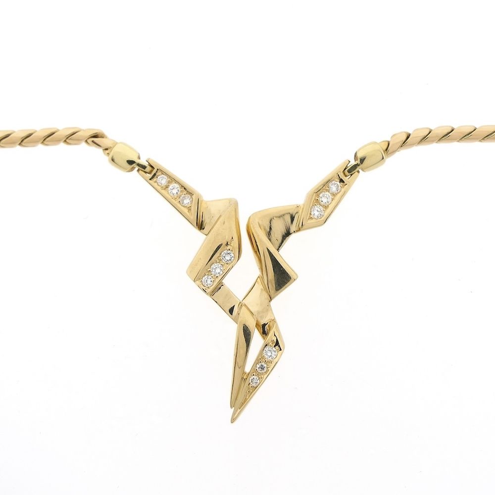 Gold Cardano link chain with fixed pendant and diamonds; 0.11 ct.