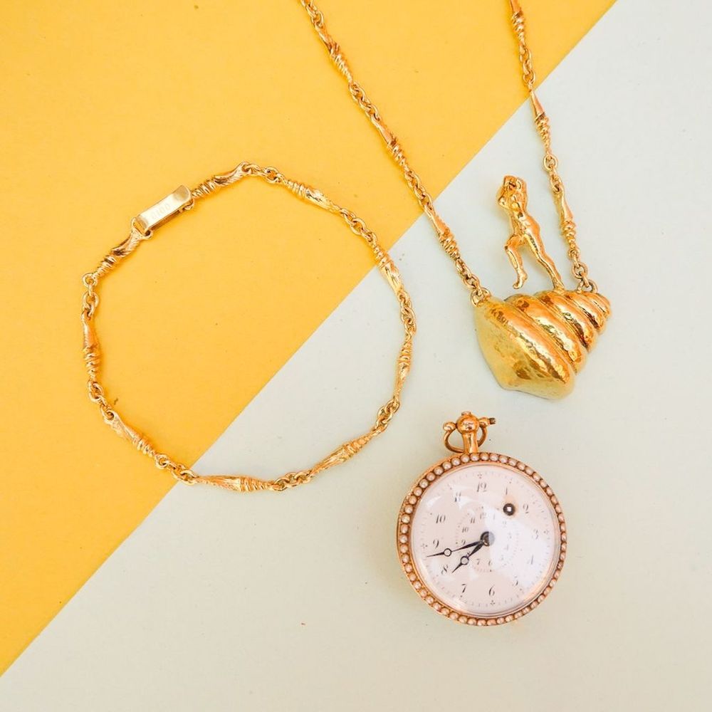 Gold chain/bracelet; Salvador Dalí, Mujer Desnuda Subiendo la Escalera