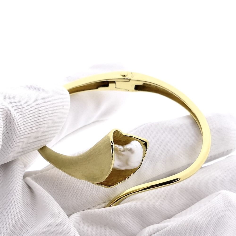 Gold clamp bracelet with baroque pearl and diamond; Size S/M