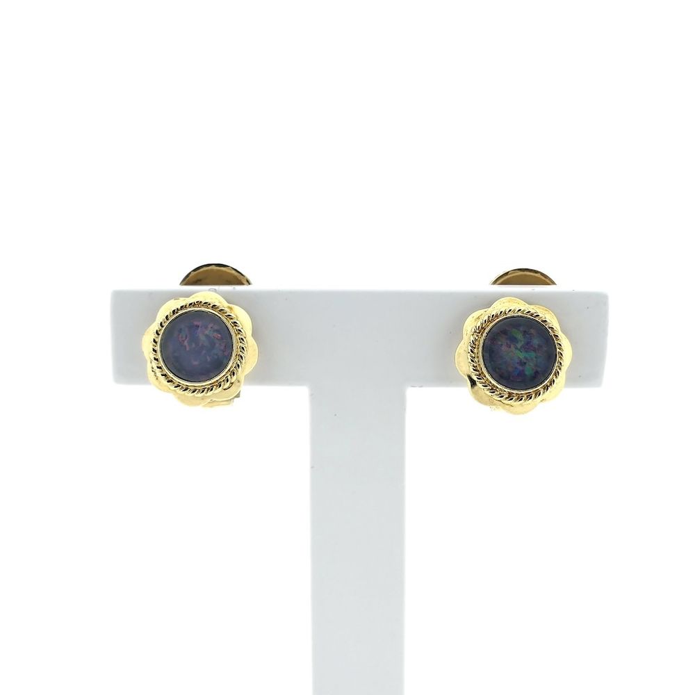 Gold clip-on earrings with precious opal | Vintage