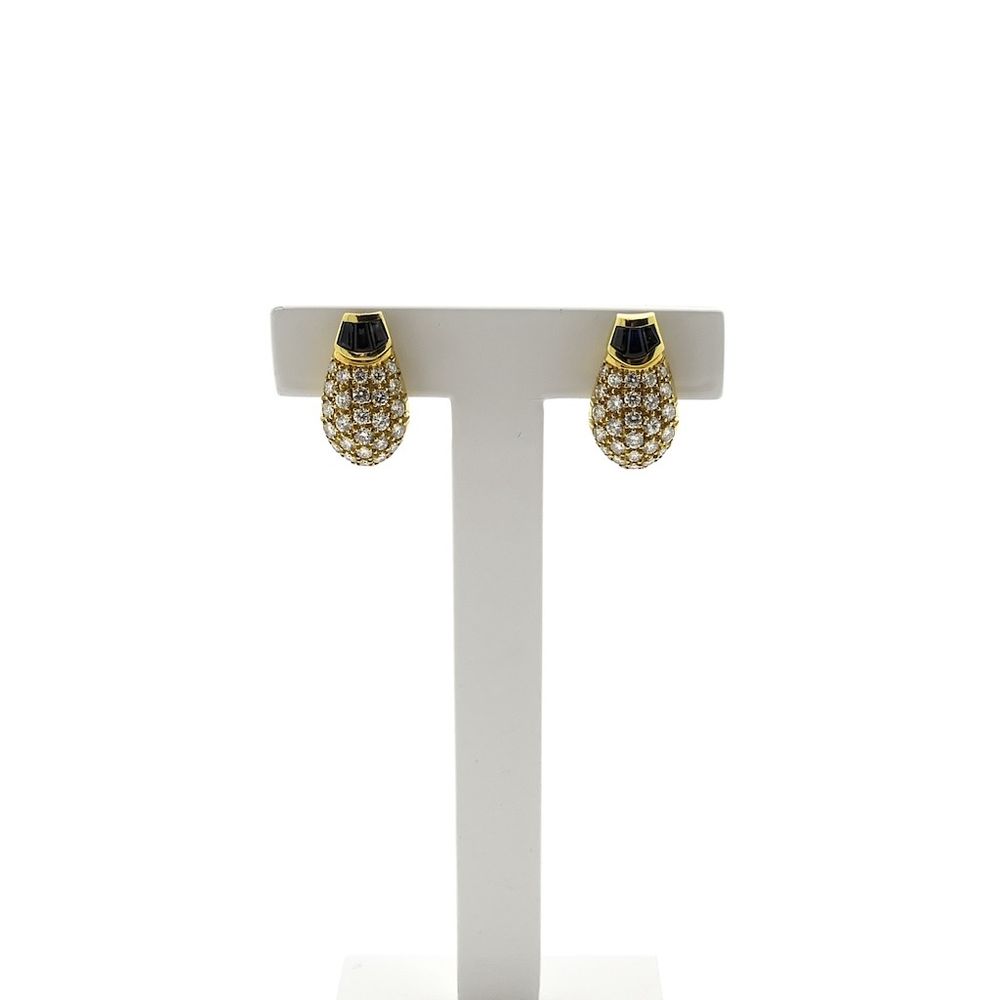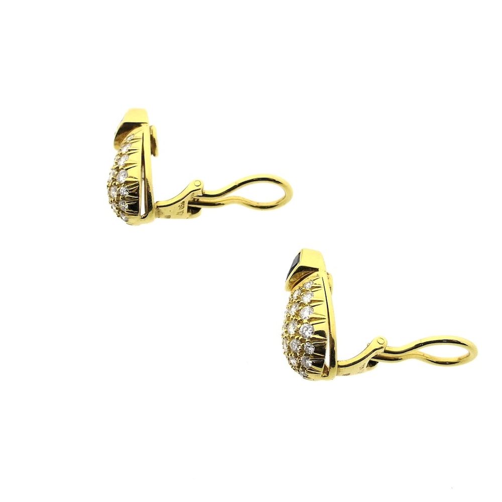 Gold clip-on earrings with sapphires and diamonds; Approx. 1.00 ct.