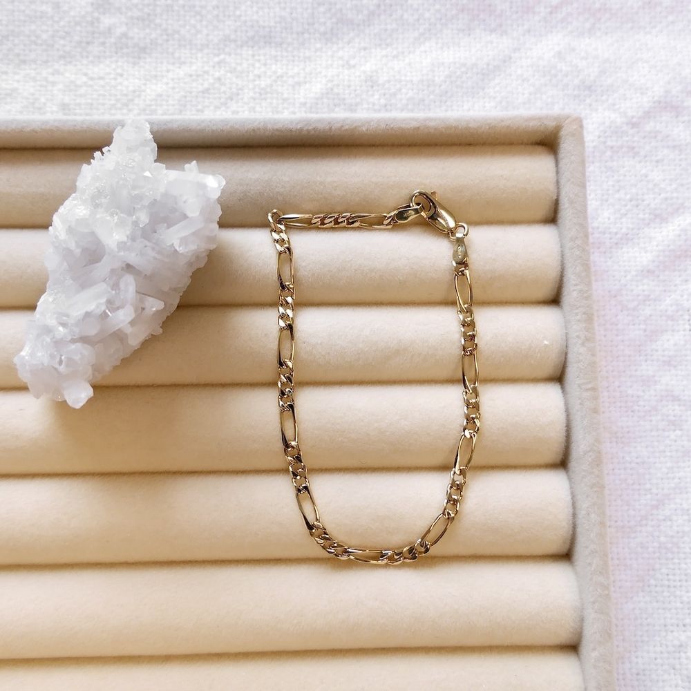 Gold closed Figaro link bracelet.