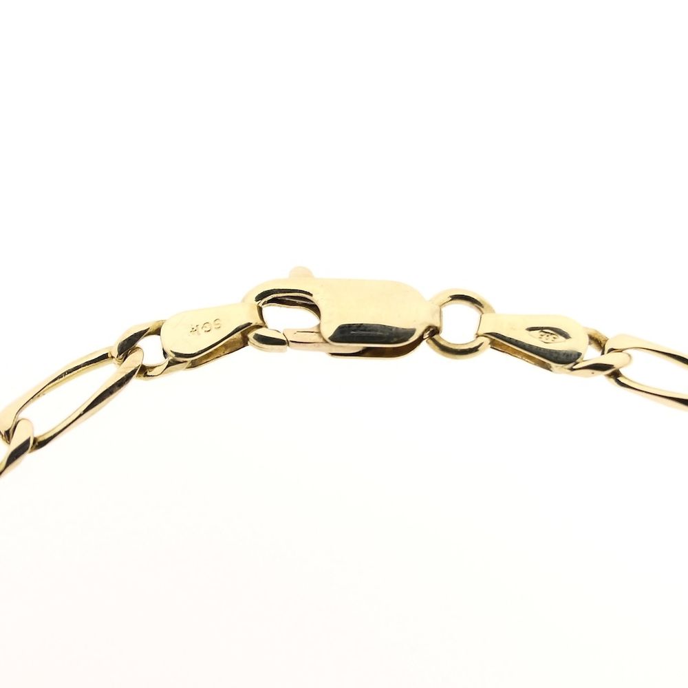 Gold Figaro link bracelet. It's a timeless, solid bracelet. The bracelet closes with a lobster clasp and is crafted from 14-karat yellow gold (585/1000).