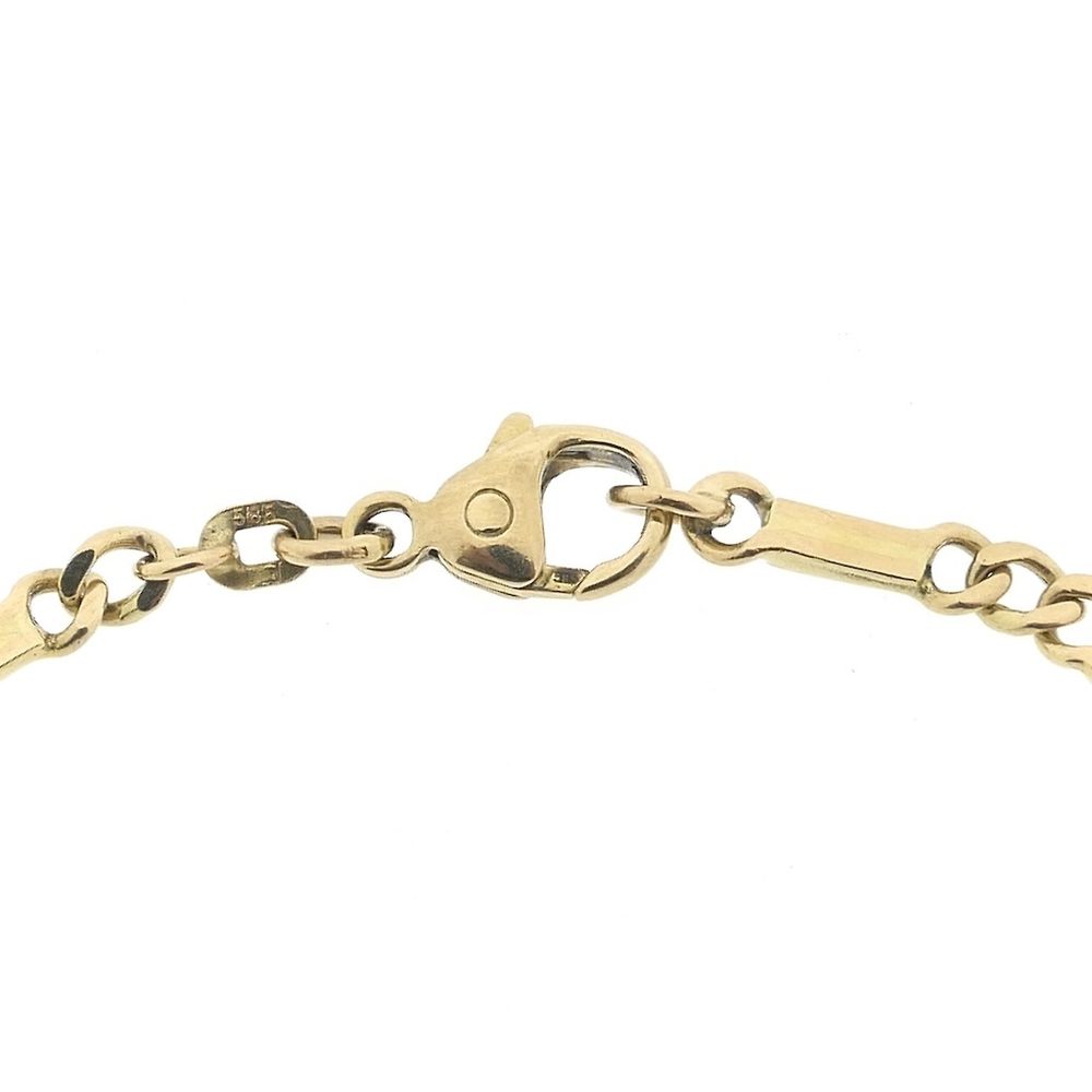 A closed gold Figaro link bracelet with a link width of 3.9 mm. The name of the link is derived from the protagonist Figaro, from the Italian opera "Barber of Seville." It is a timeless, durable bracelet. The bracelet closes with a lobster clasp and is crafted from 14-karat yellow gold (585/1000).
