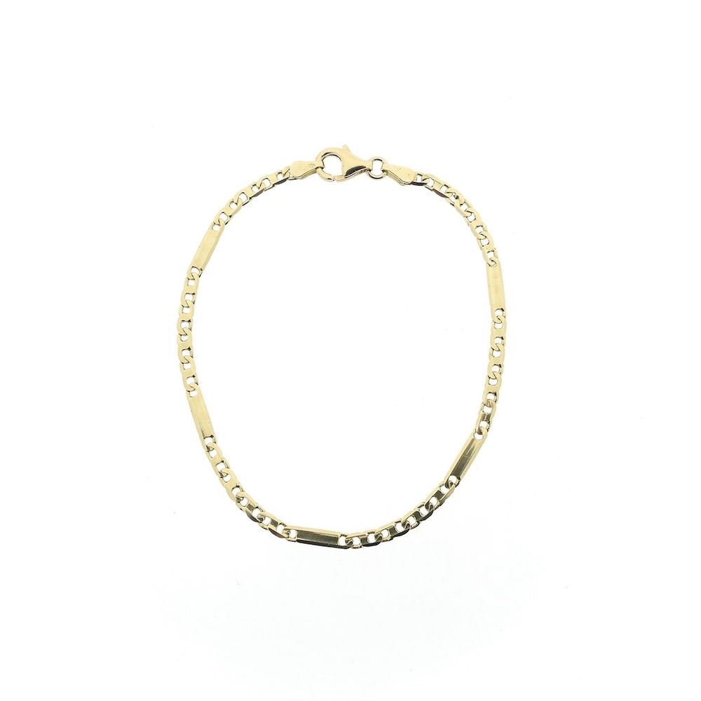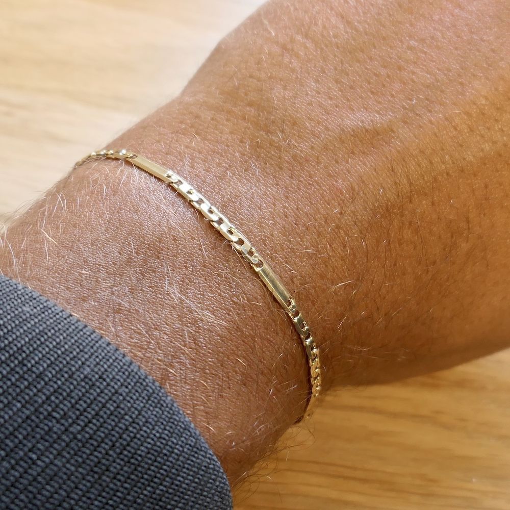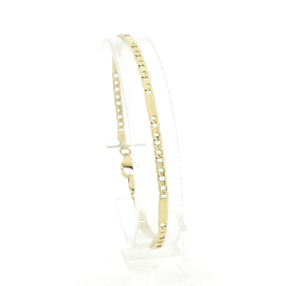 Gold closed Figaro link bracelet. This is a timeless, solid bracelet. Crafted from 14-karat yellow gold (585/1000).