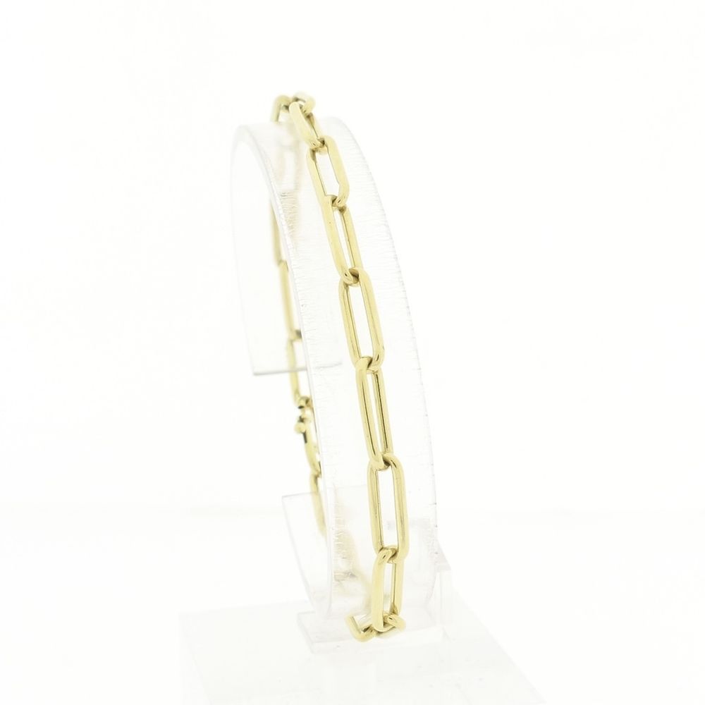 Gold Closed Forever bracelet. The bracelet has a link width of 4.7 mm. A beautiful and modern bracelet made of 14-karat yellow gold (585/1000). In the past, the clasp on a closed forever bracelet was actually closed forever. The clasp (which was actually just a link) was soldered shut and therefore could no longer be opened. Nowadays, it has an opening hook, but the clasp still resembles the rest of the links. The original look has been preserved, and the bracelet is becoming increasingly popular.