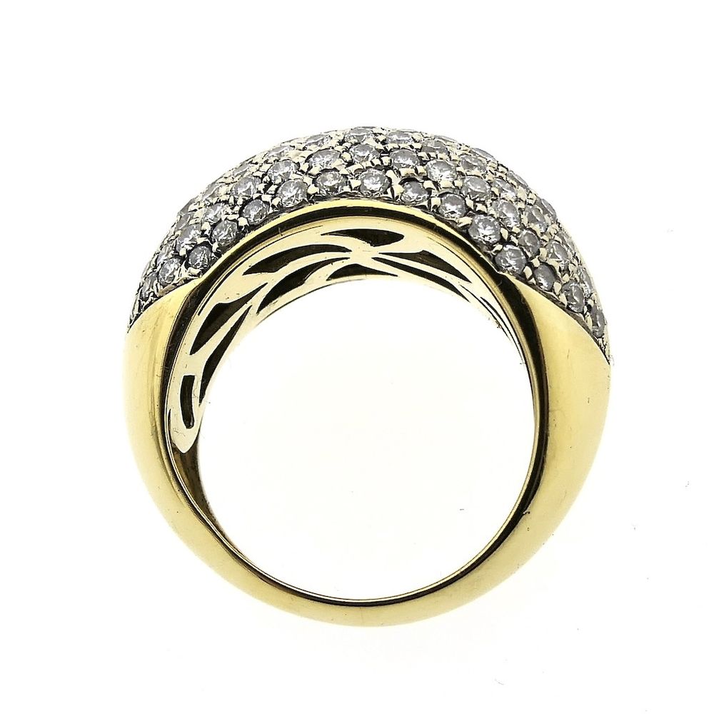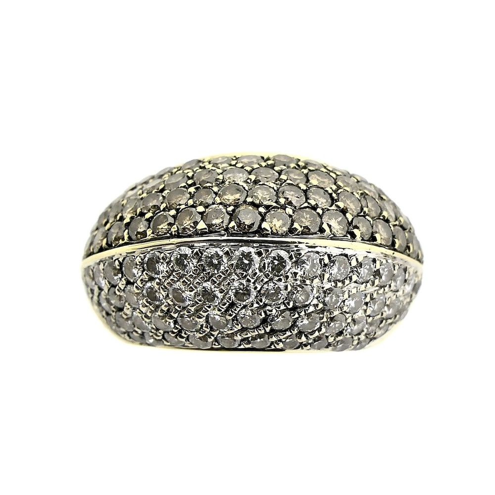 Gold cocktail ring. The ring is pavé-set with sparkling, brilliant-cut diamonds totaling 3.39 ct. Half of the diamonds are bright white, while the other half are dark champagne. The ring is crafted from 18-karat yellow gold (750/1000).