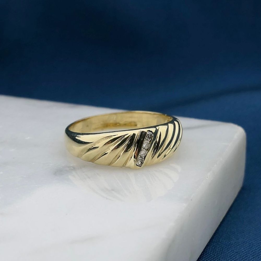 Gold crescent ring set with diamonds. A timeless ring with a modern look. The ring is crafted from 14-karat yellow gold (585/1000).