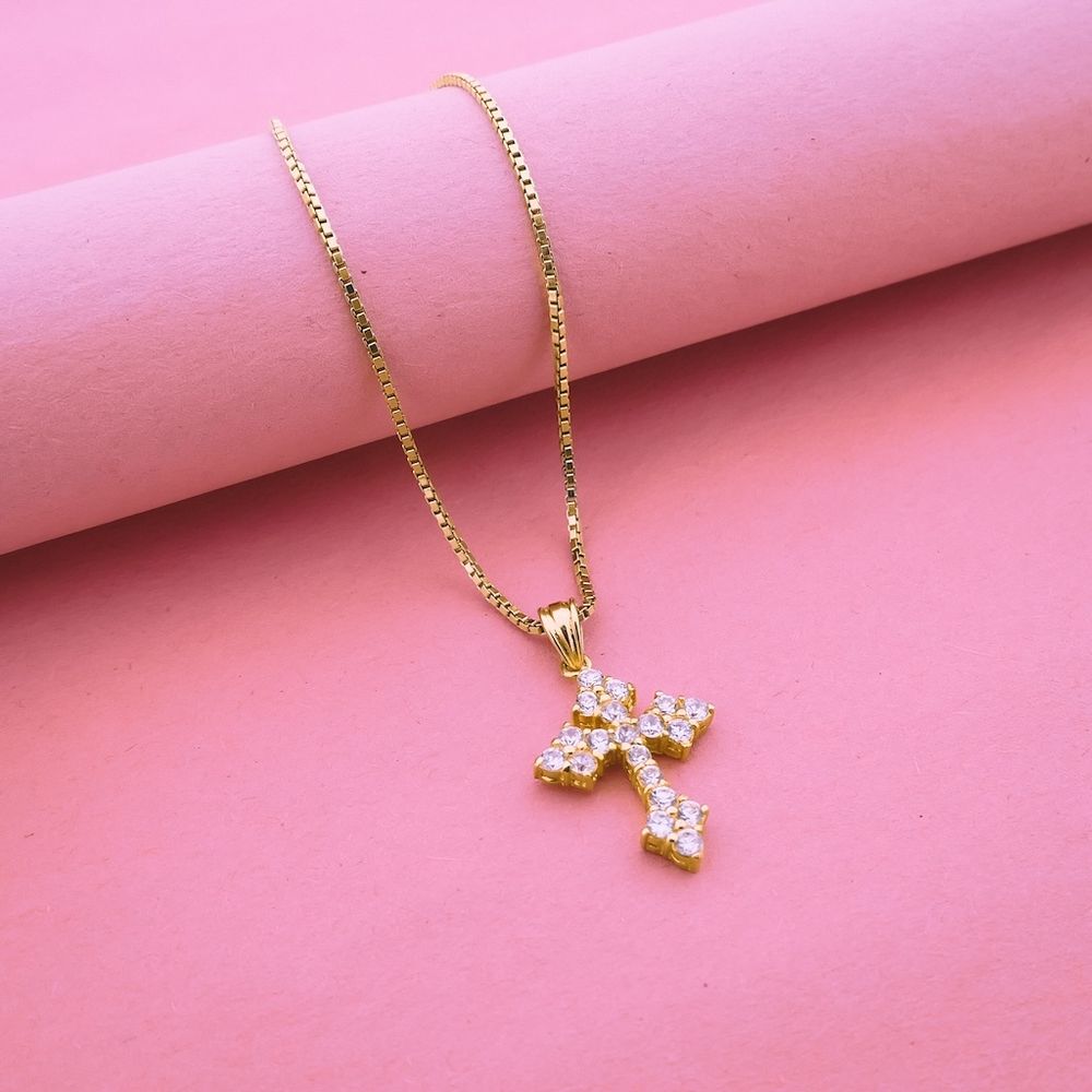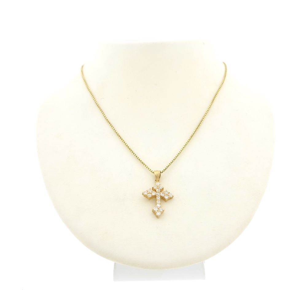 Gold pendant of the cross of Christ set with beautiful cubic zirconia. A beautiful pendant crafted from 14-karat yellow gold (585/1000).