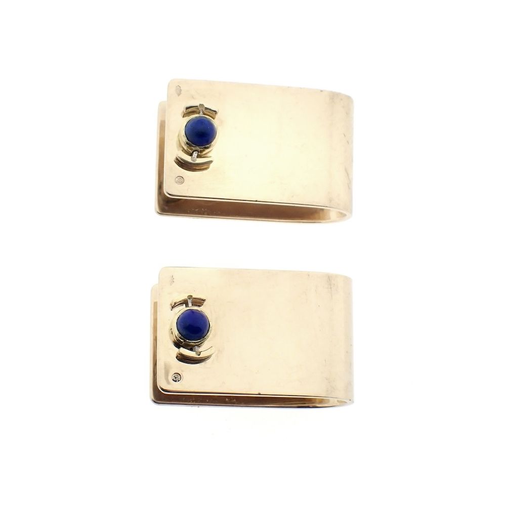 Gold cufflinks with azure lapis lazuli stones. The cufflinks are semicircular in shape. A beautiful piece to complete your look. The cufflinks are crafted from 14-karat yellow gold (585/1000).