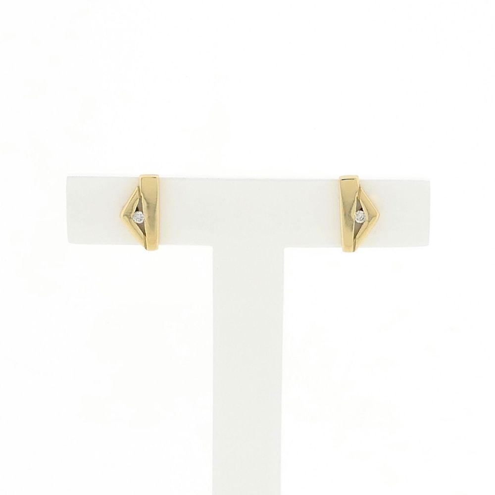 Gold earrings set with a total of 0.01 ct. natural diamonds. A modern and subtle set. The earrings are made from 14 karat yellow gold (585/1000).