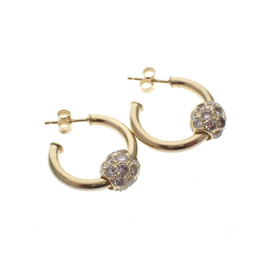 Gold earrings with zirconia; Ø 20.0 mm