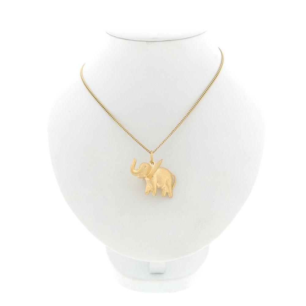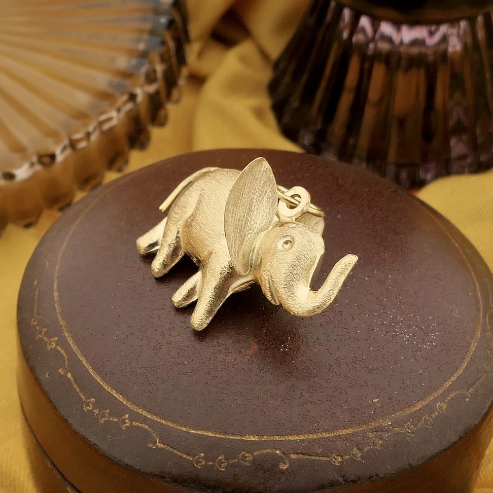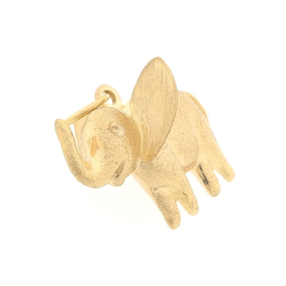 Gold elephant pendant. The elephant is intricately detailed with large ears. The pendant is suitable for a thin to medium chain. Crafted from 18-karat yellow gold (750/1000), it is a perfect fit for any necklace.
