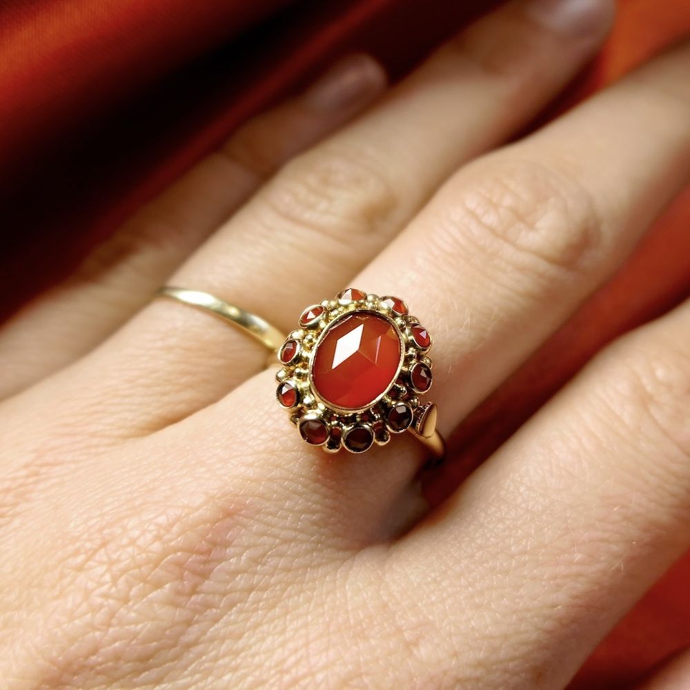 Gold entourage ring with carnelian | Vintage