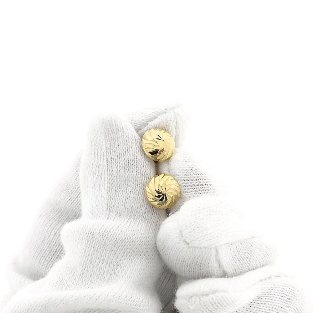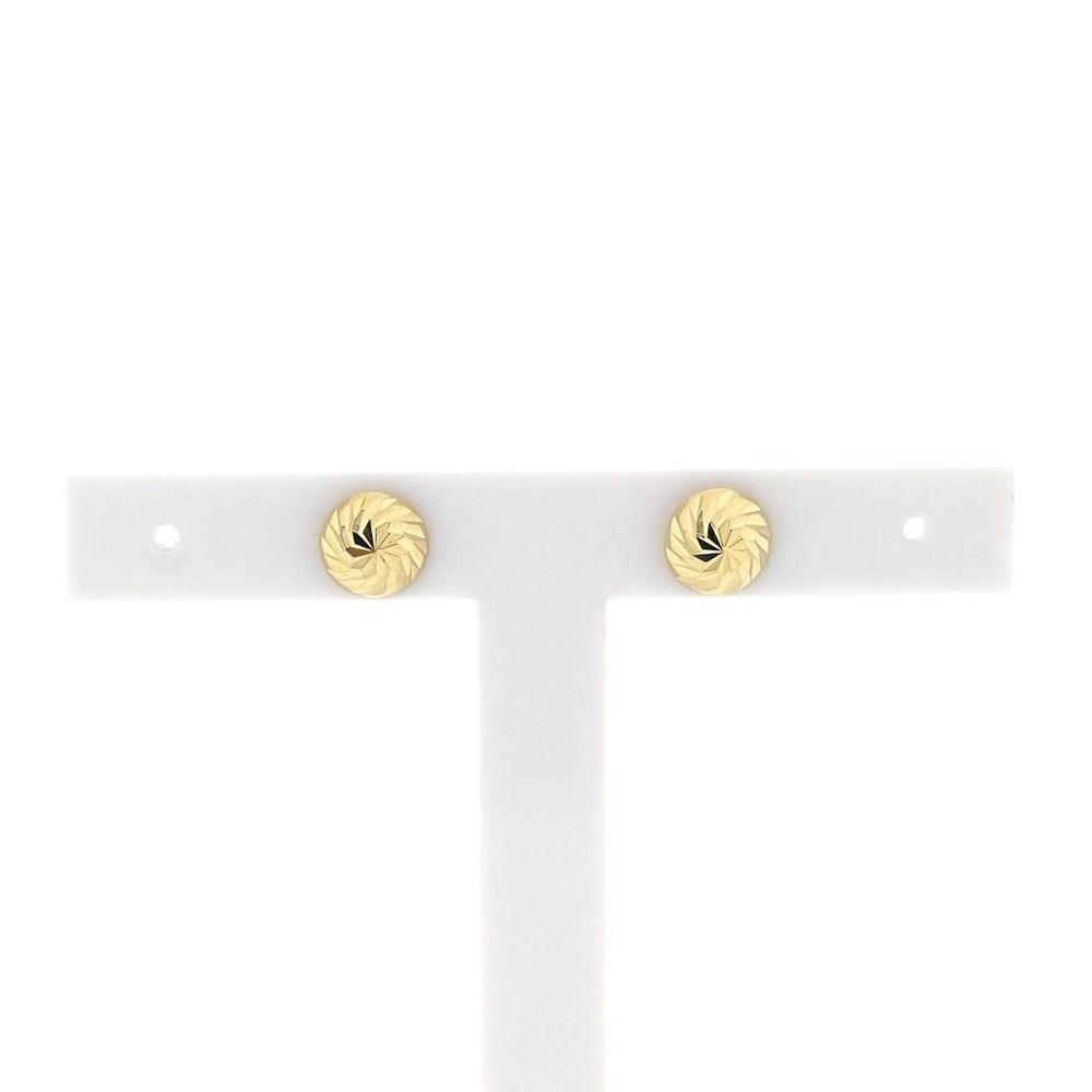 Set of gold stud earrings with a faceted finish. A lovely set of stud earrings crafted from 14-karat yellow gold (585/1000).