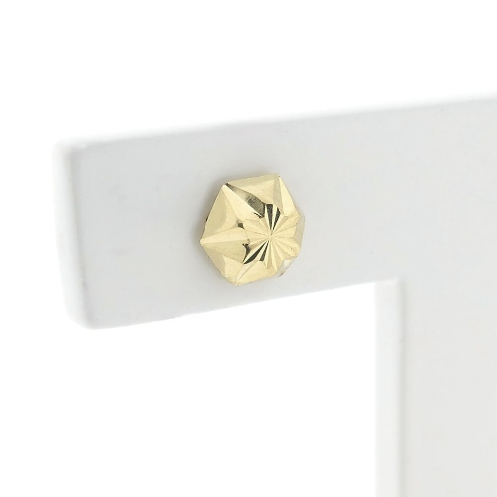 Subtle gold stud earrings. These studs are perfect for wearing solo or layering with other earrings. A beautiful set of studs crafted from 14-karat yellow gold (585/1000).