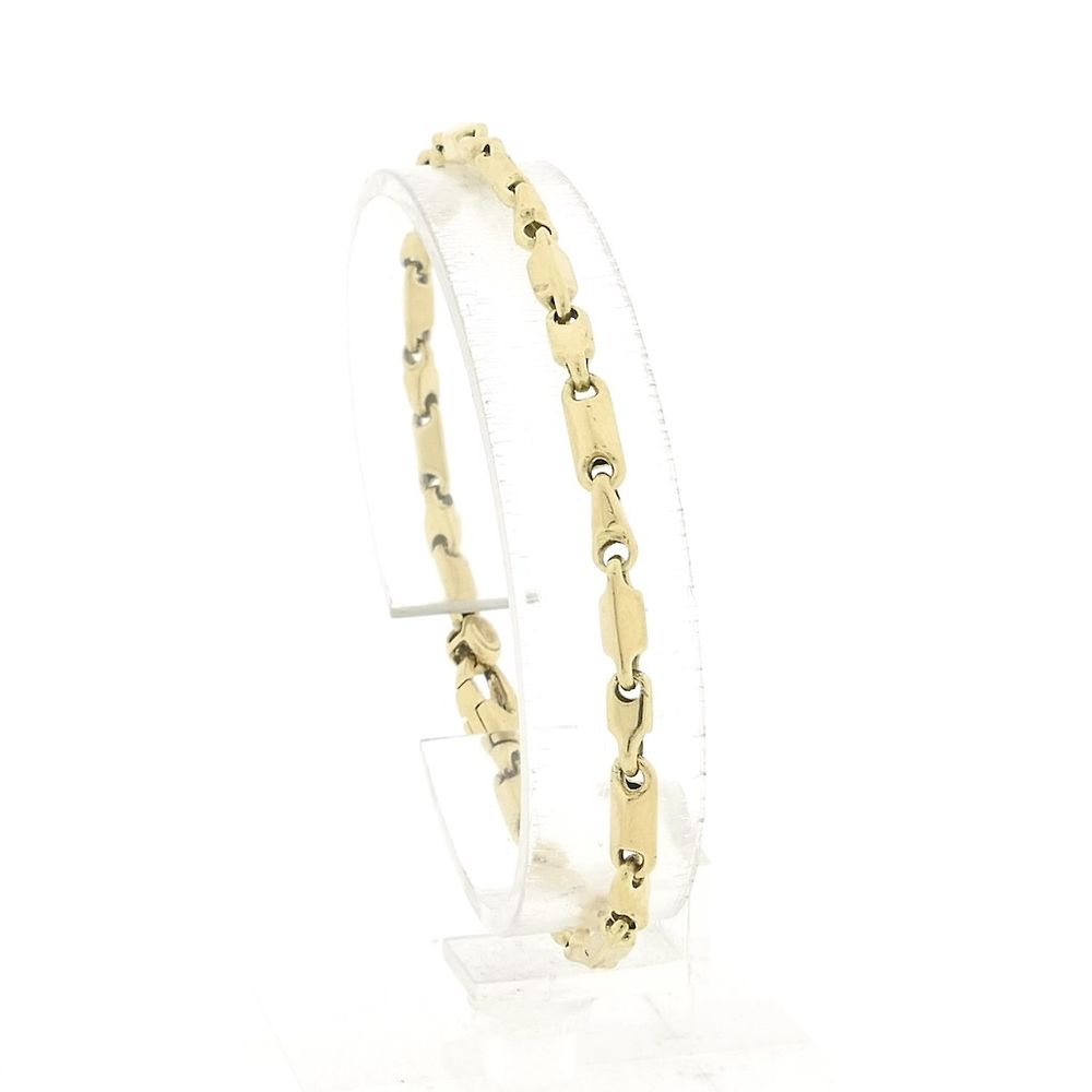 Gold fantasy link bracelet. It's a solid and timeless link. The bracelet is made of 14-karat yellow gold (585/1000).