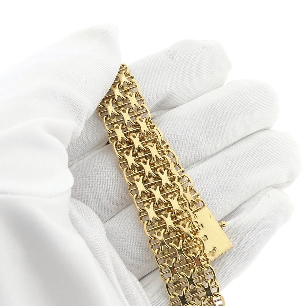 Exclusive gold bracelet with a decorative link. This beautiful and elegant bracelet is a real eye-catcher. Crafted from 18-karat yellow gold (750/1000), it is a true statement piece.