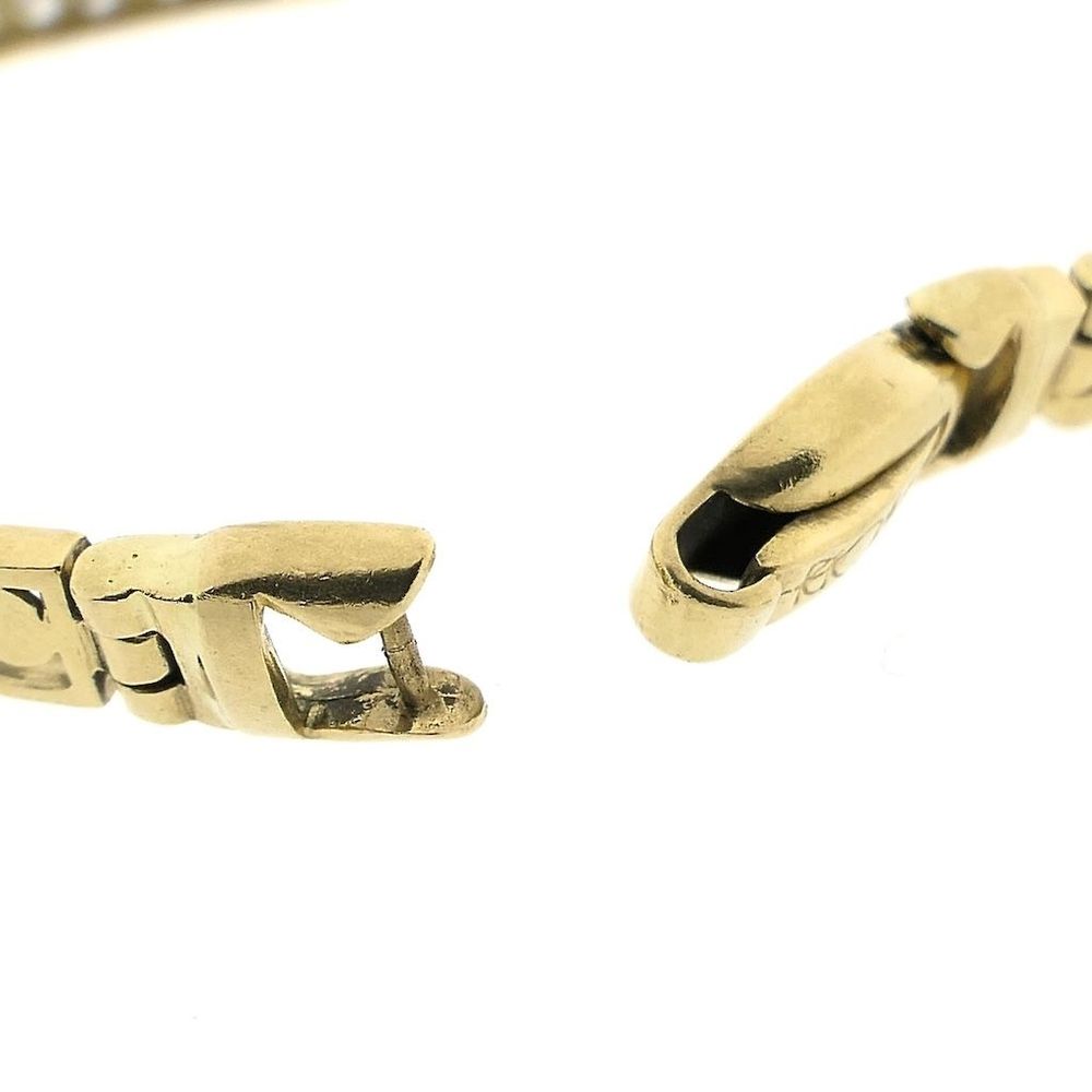 Gold fantasy link bracelet. The links are set with clear and blue cubic zirconia stones. The stones sparkle beautifully in the light. The bracelet is made of 14-karat yellow gold (585/1000).