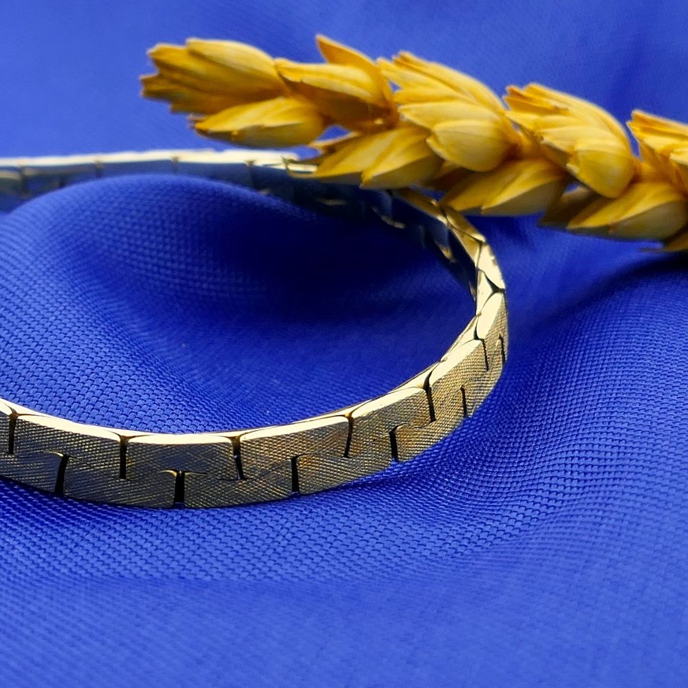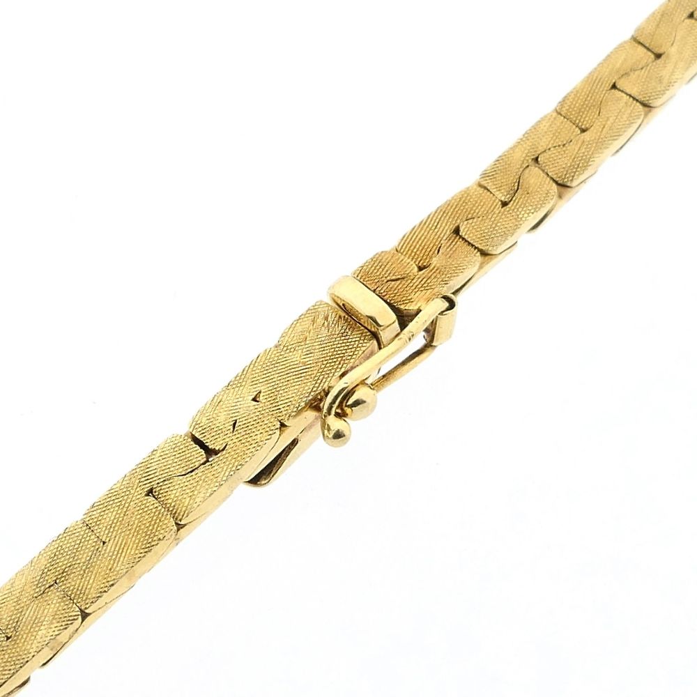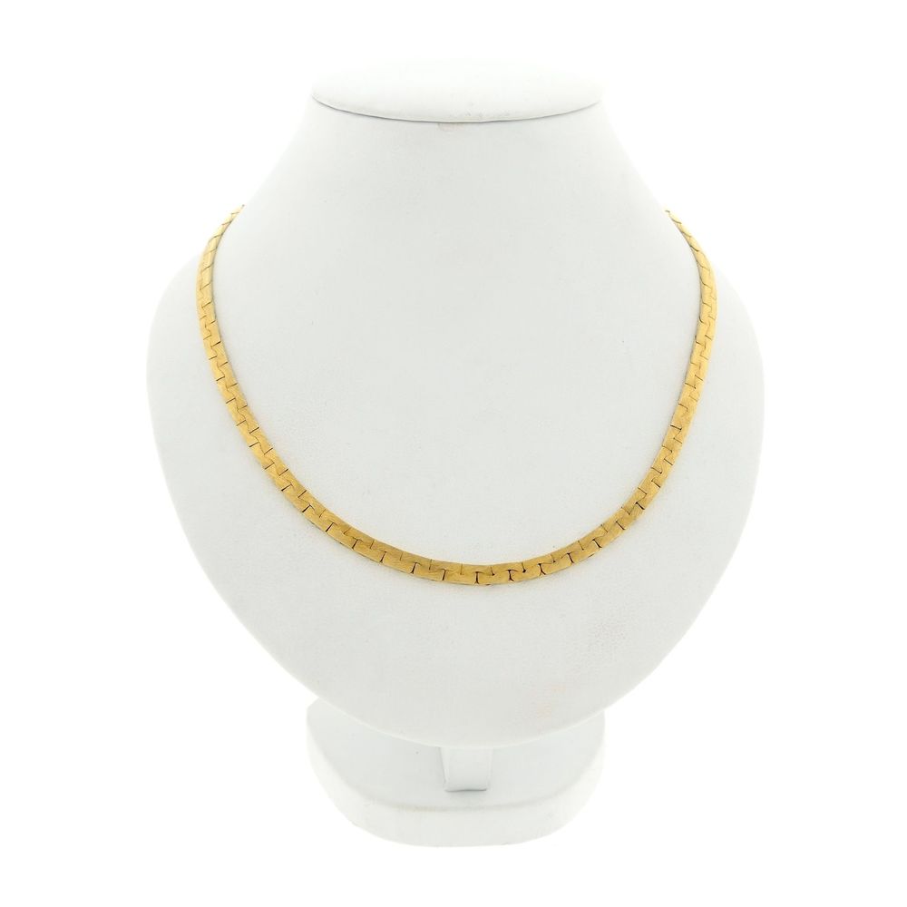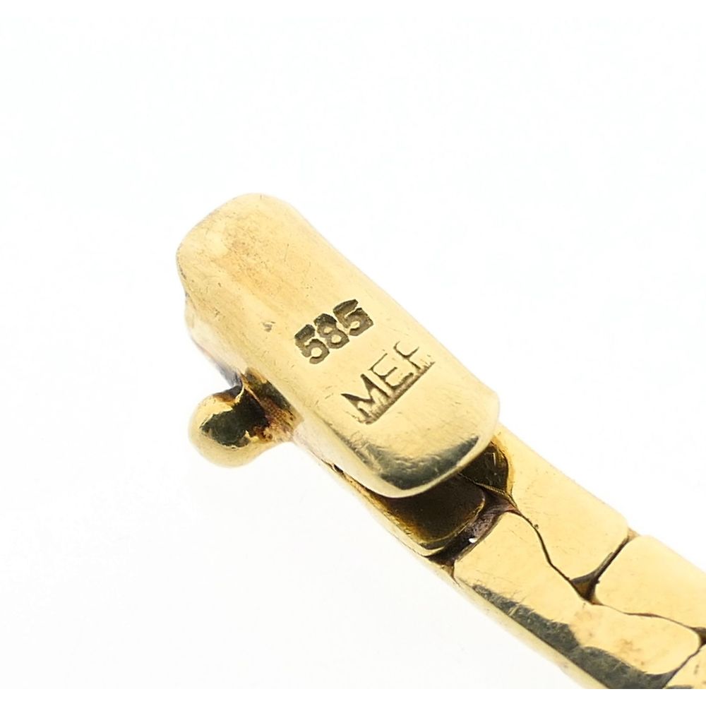 Gold fantasy link necklace. The links are matted on the front and polished on the back. The necklace is made of 14-karat yellow gold (585/1000).