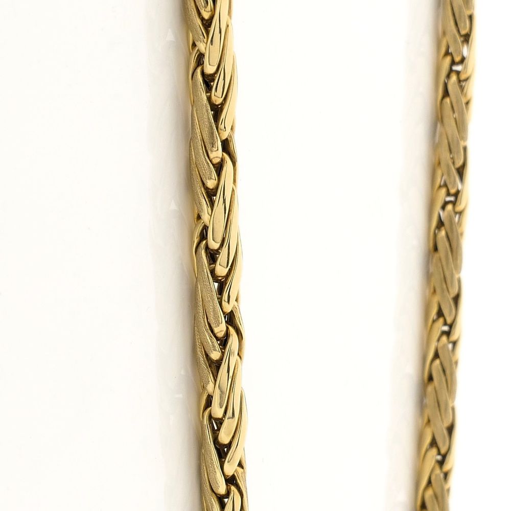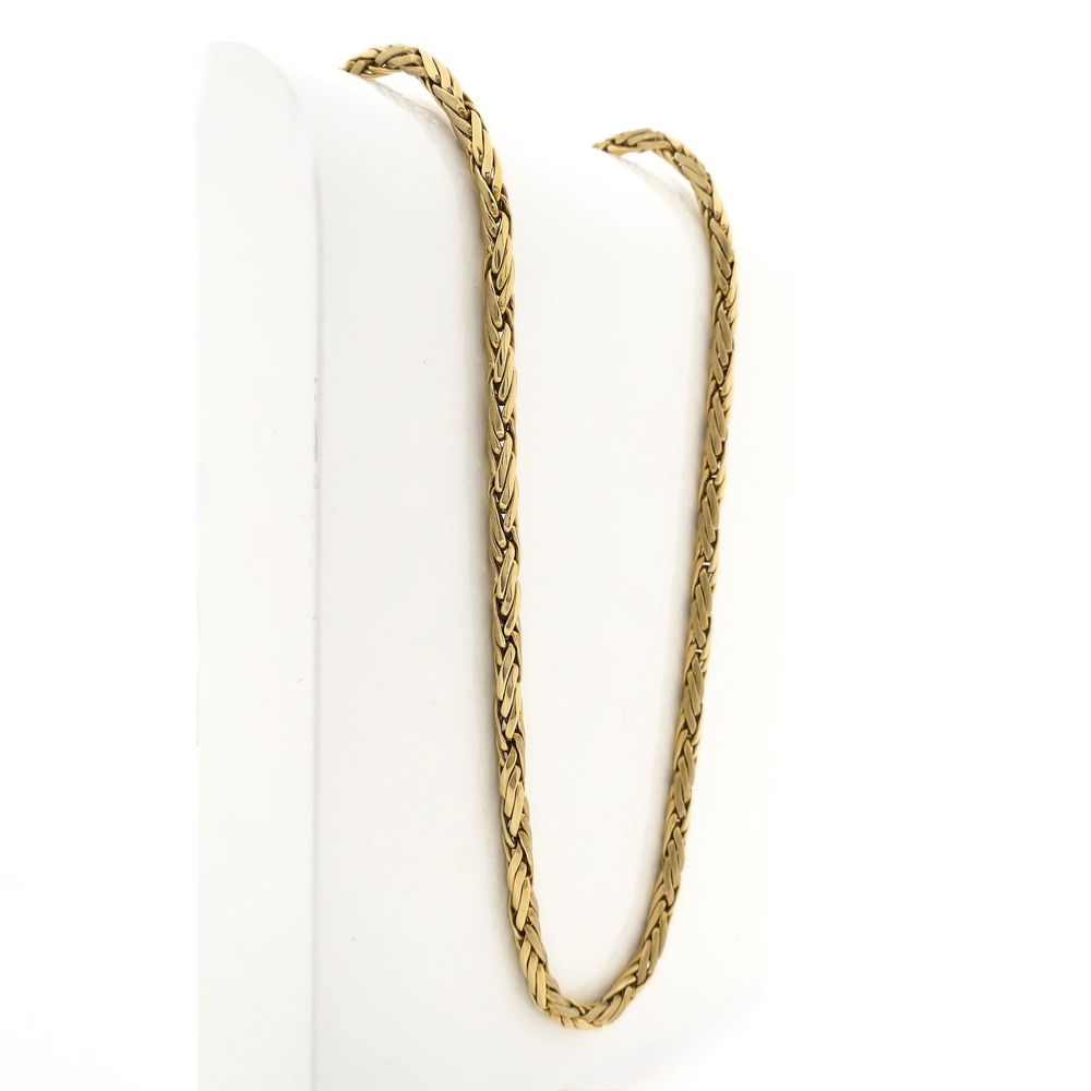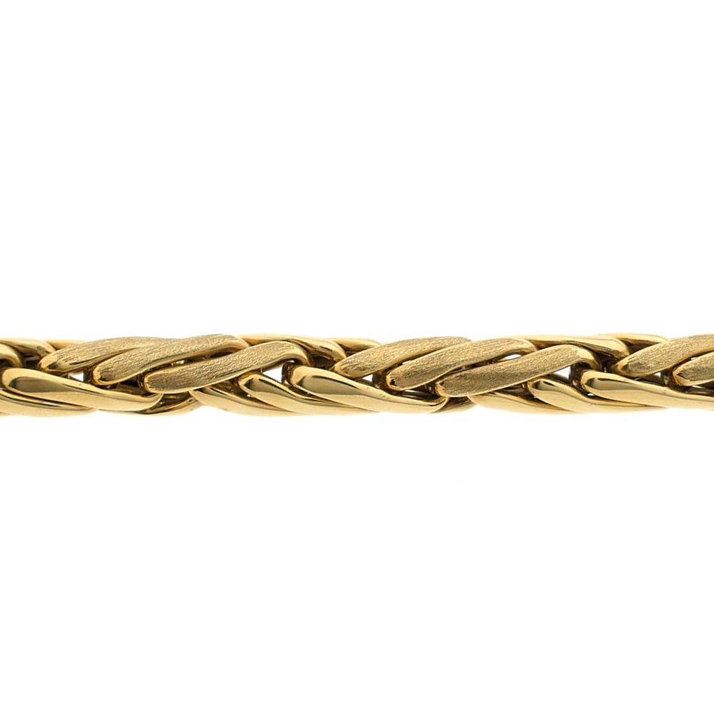 Gold necklace with a fantasy/foxtail link. It features matte and polished sections. The necklace has no clasp and is crafted from 14-karat yellow gold (585/1000).
