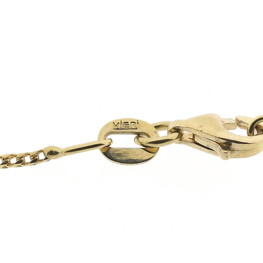 Gold fantasy link necklace. The links are 1.1 mm wide. The clasp is engraved with the Italian brand "VIERI." The necklace closes with a lobster clasp and is crafted from 18-karat yellow gold (750/1000).