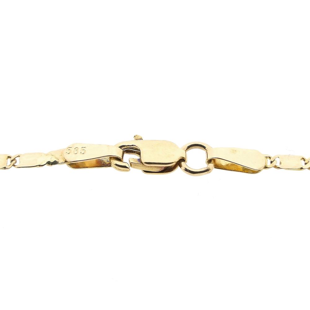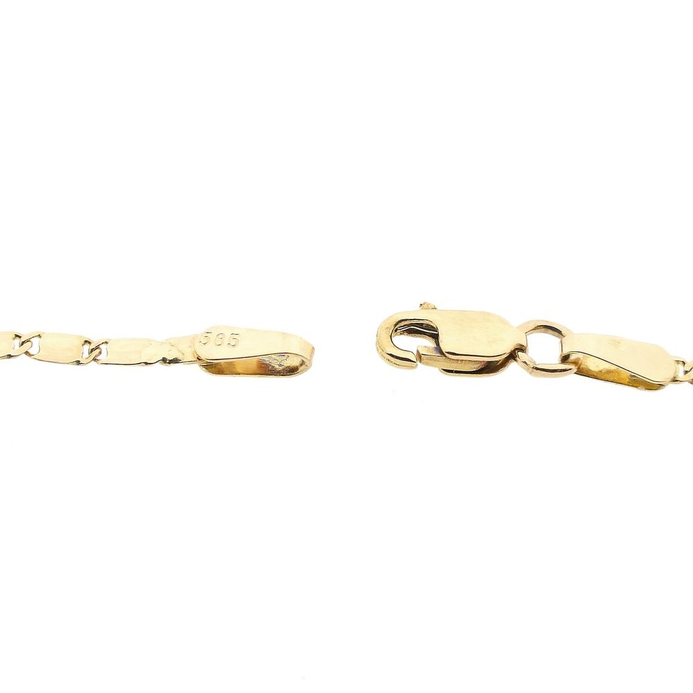 A gold fantasy link necklace made with closed links. The necklace is suitable for a small to medium-sized pendant or can be worn without a pendant. A subtle and timeless necklace crafted from 14-karat yellow gold (585/1000).