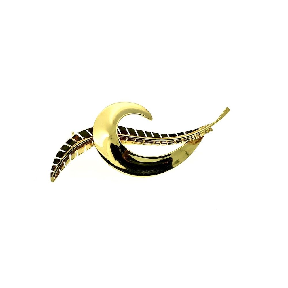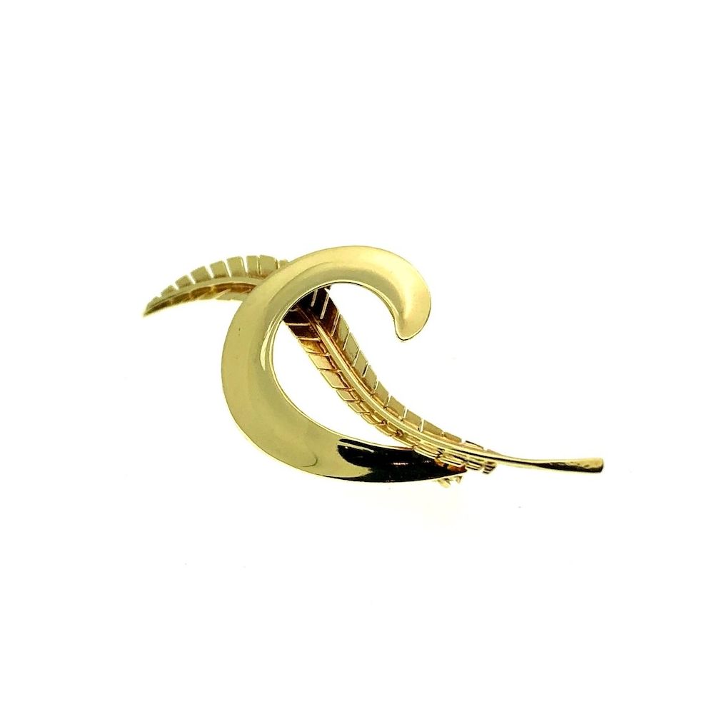 Gold feather brooch | 14 carat