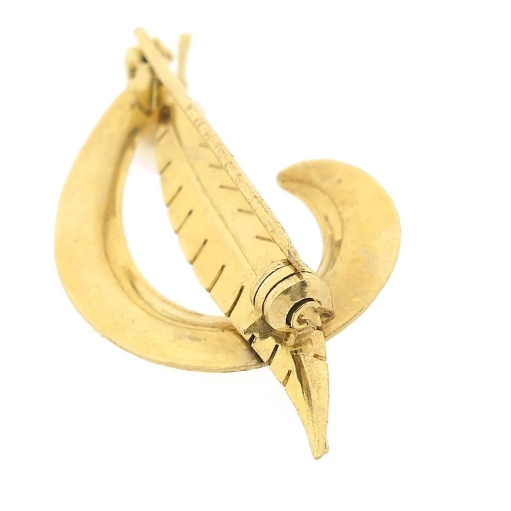 Gold feather brooch with pearl