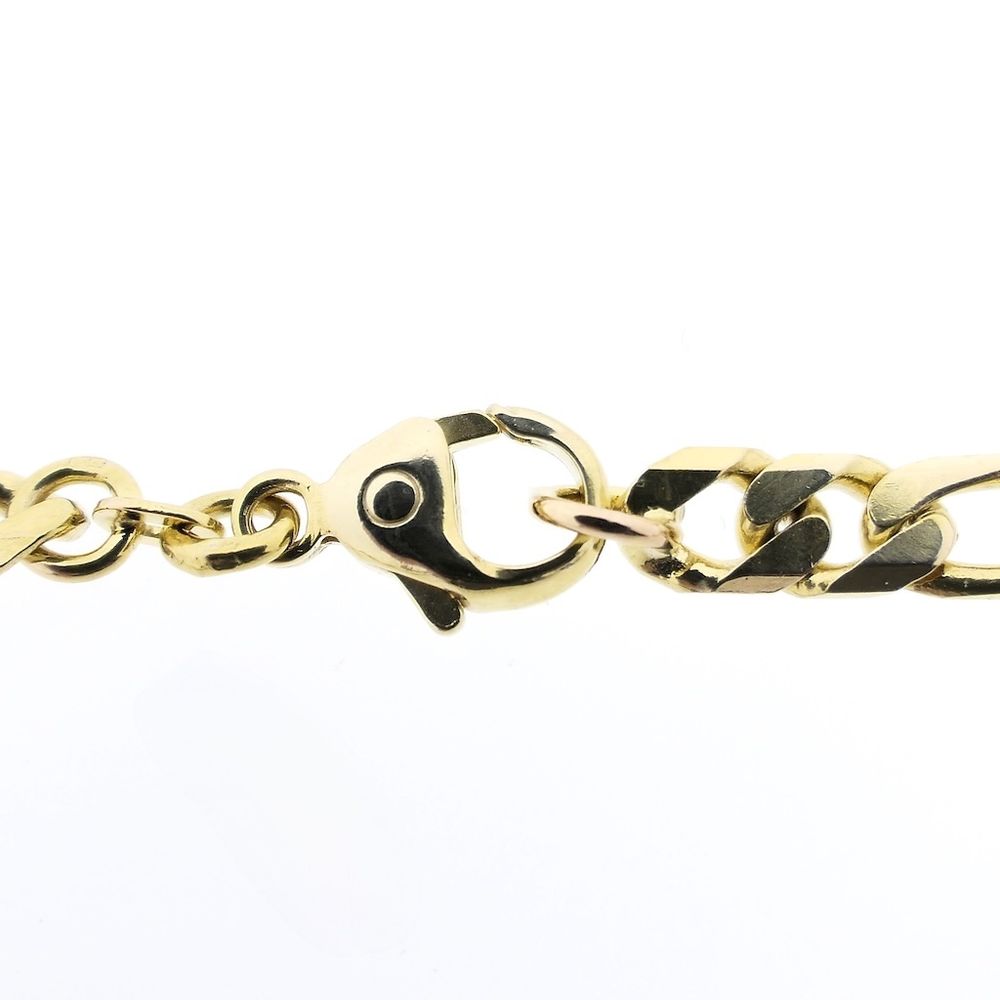 Gold Figaro link chain. Given its length, it's an ideal necklace for men to wear. The chain is solid and crafted from 14-karat yellow gold (585/1000).