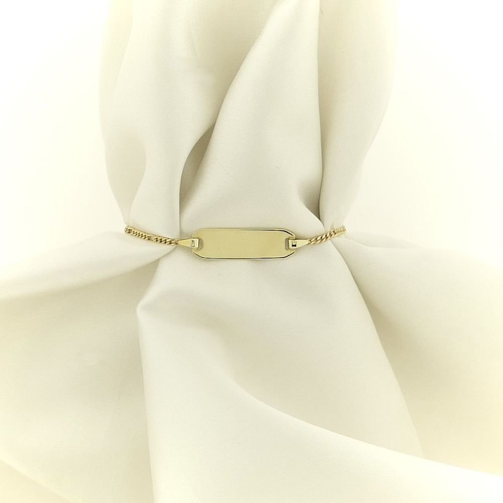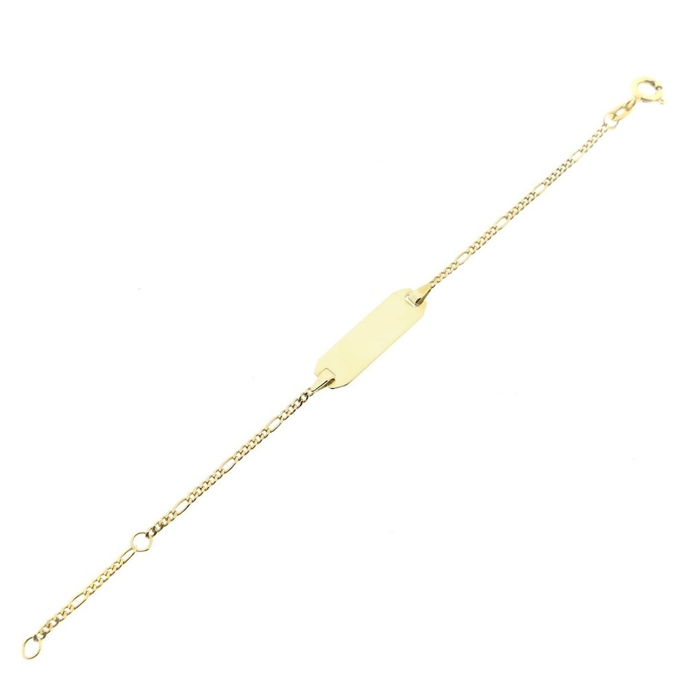 Gold Figaro link children's bracelet with engraving plate | 13 cm