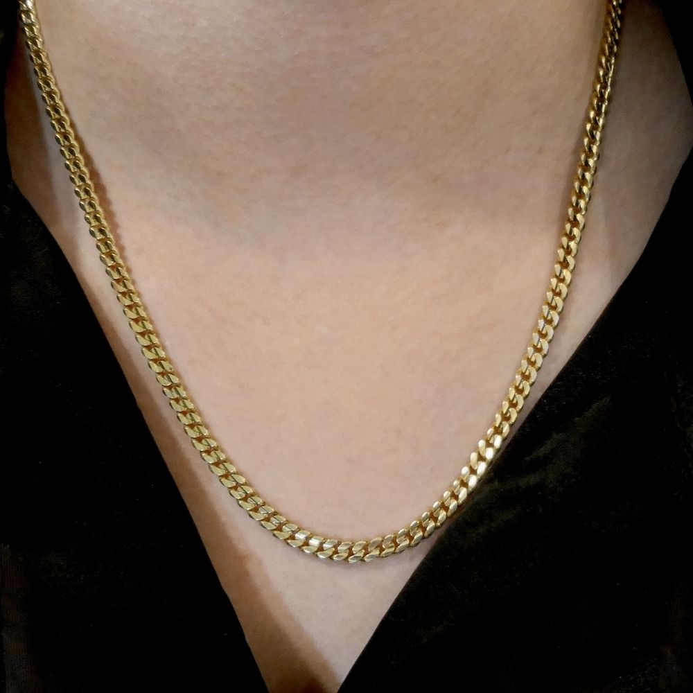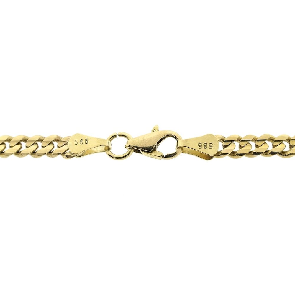 Gold flat curb link necklace. The classic curb link necklace is an oval link with a slight twist, making it a strong link. The necklace is suitable for a small to medium-sized pendant or can be worn without a pendant. A classic and timeless piece of jewelry. The necklace closes with a lobster clasp and is crafted from 14-karat yellow gold (585/1000).