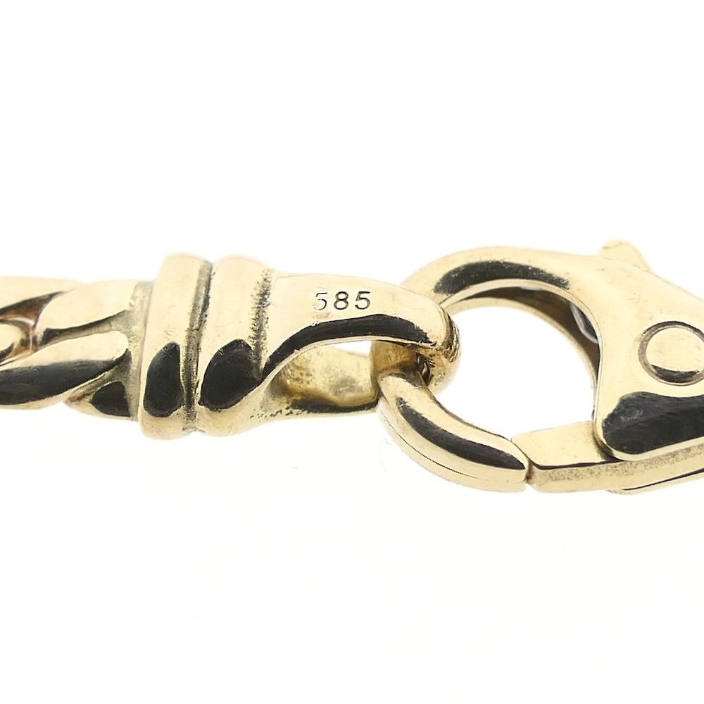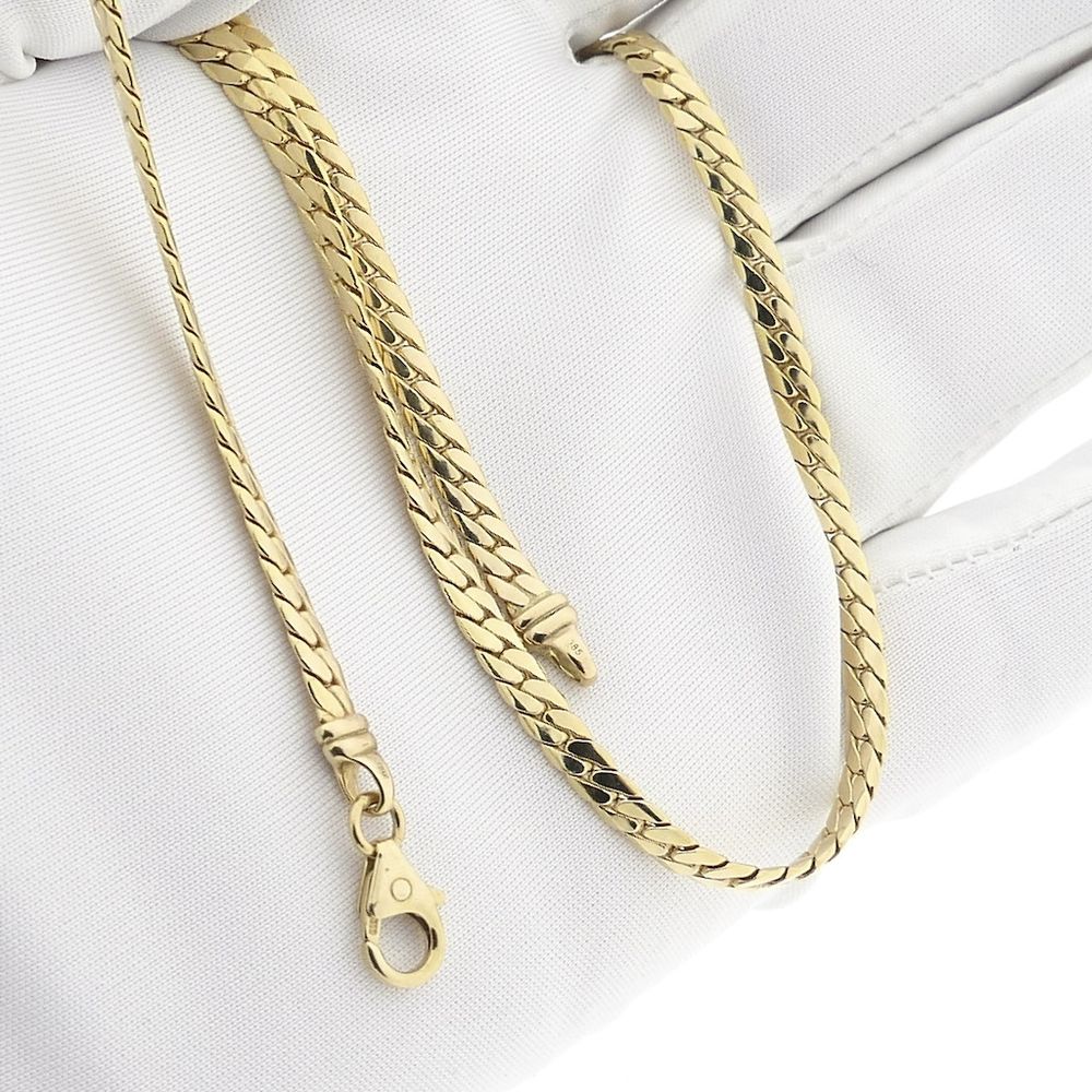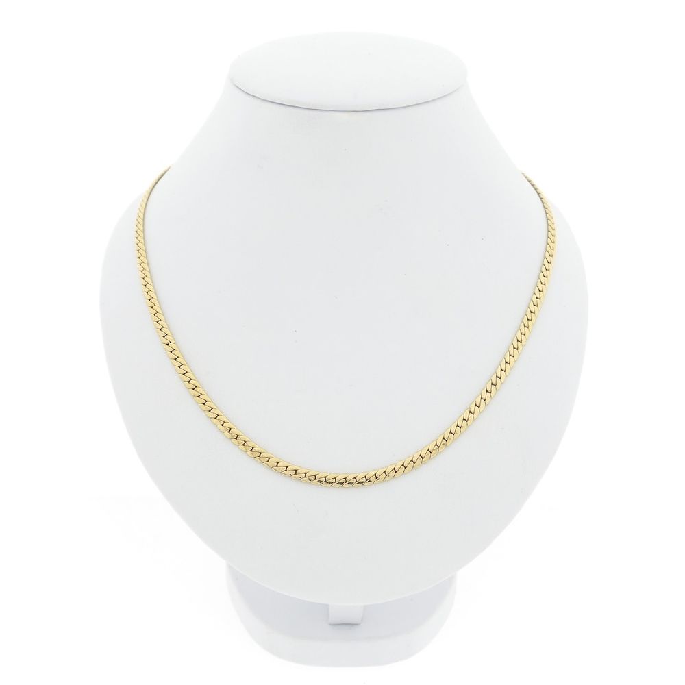 Gold flat curb link necklace. The 3.6 mm wide links have a subtle and modern look. A classic and timeless piece. The necklace closes with a lobster clasp and is crafted from 14-karat yellow gold (585/1000).