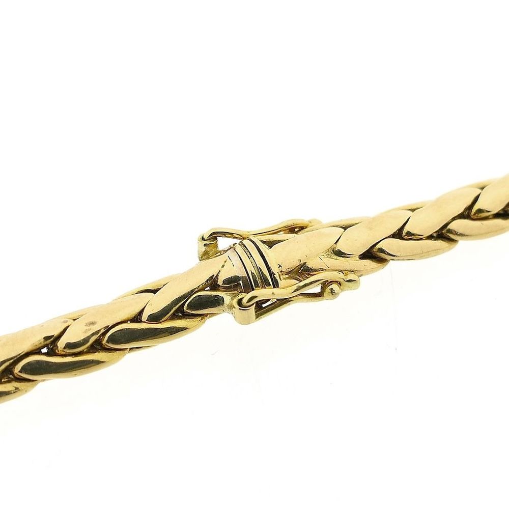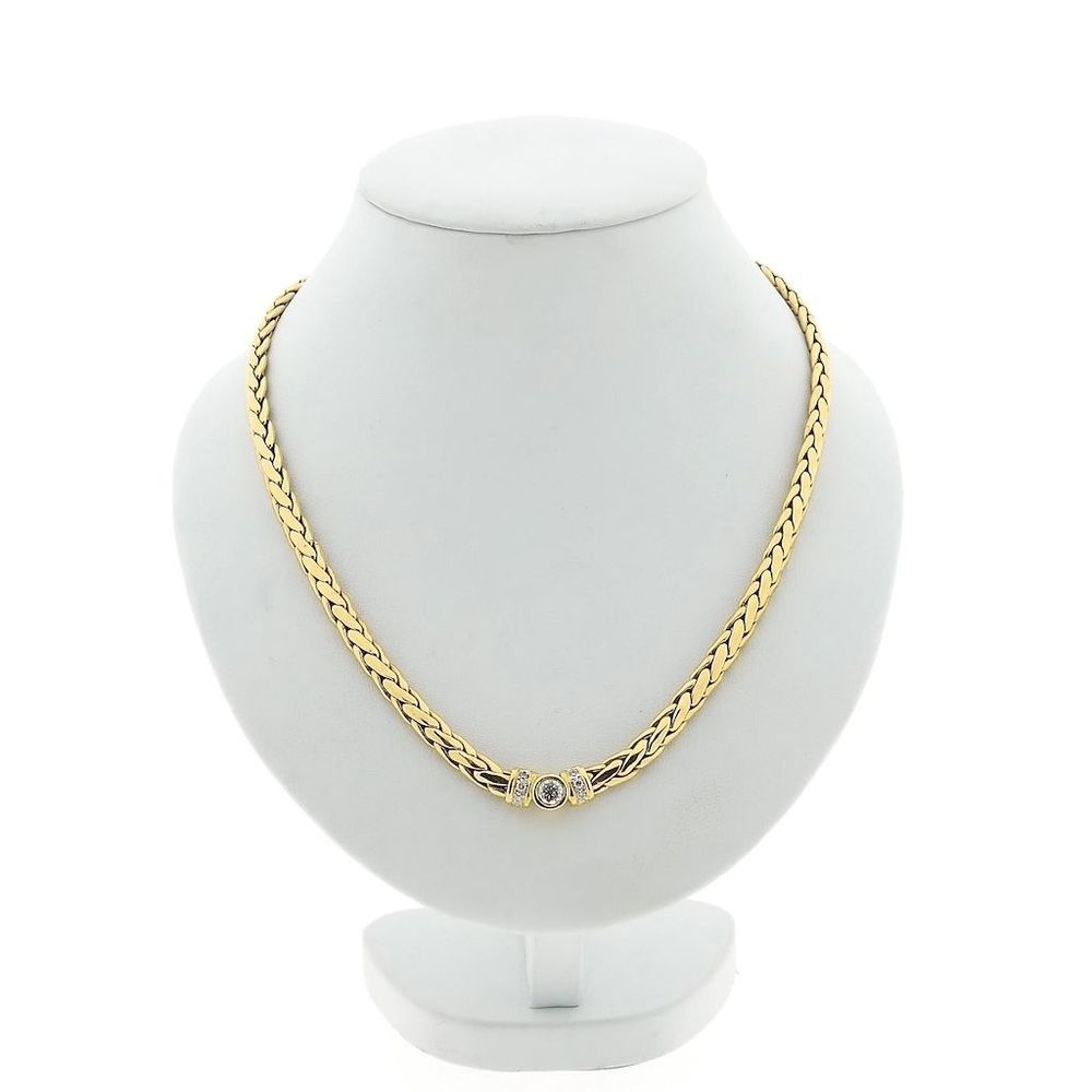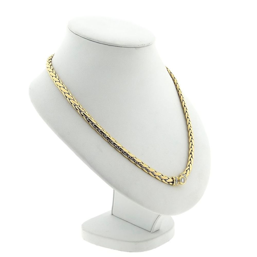 Solid gold foxtail link necklace set with natural diamonds. A design with an elegant and luxurious look. The necklace closes with a box clasp with two safety hooks and is crafted from 18-karat yellow gold (750/1000).