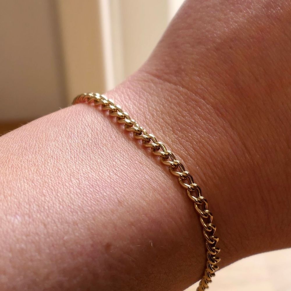 Gold gourmet link bracelet. The bracelet has a modern look and can be worn solo or combined with other bracelets. The bracelet closes with a lobster clasp and is made of 14 karat yellow gold (585/1000).