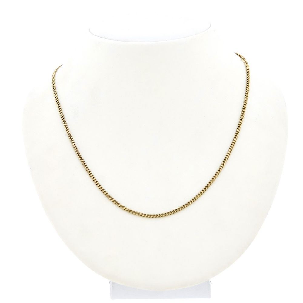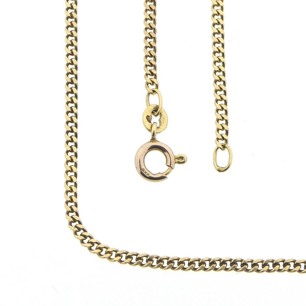 Gold curb link necklace. This necklace is perfect for a small to medium-sized pendant. It closes with a spring clasp and is crafted from 14-karat yellow gold (585/1000).