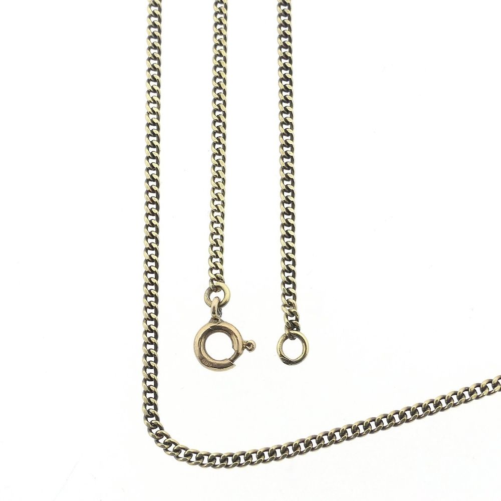 Gold curb link necklace. The links are 1.9 mm wide. The necklace is suitable for a small to medium-sized pendant or can be worn without a pendant. A classic and timeless piece. The necklace closes with a spring ring and is crafted from 14-karat yellow gold (585/1000).