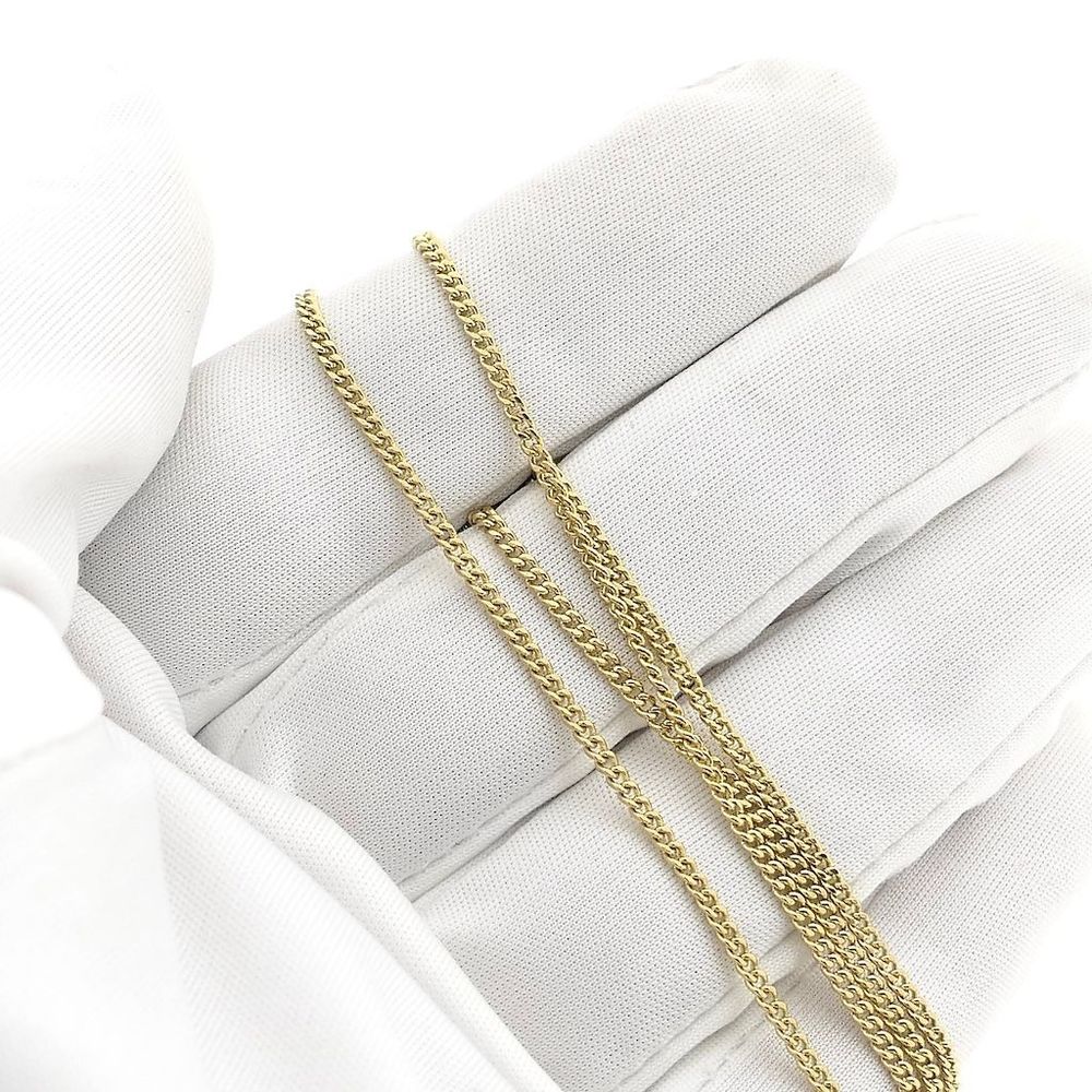 Gold chain made with gourmet links. This classic link is an oval shape with a slight twist. The chain is perfect for a medium to large pendant or can be worn without a pendant. The chain is crafted from 14-karat yellow gold (585/1000).