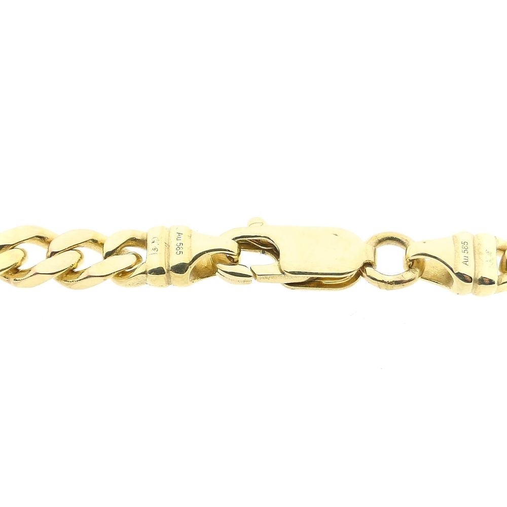Gold curb link necklace. The classic curb link is an oval link with a slight twist, making it a strong link. The necklace is suitable for a small to medium-sized pendant or can be worn without it. A classic and timeless piece of jewelry. The necklace closes with a lobster clasp and is crafted from 14-karat yellow gold (585/1000).