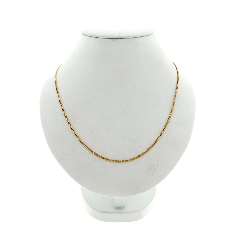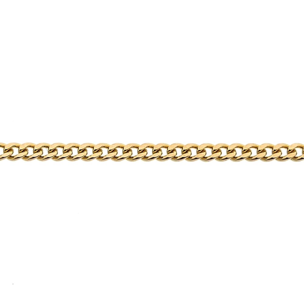 Gold curb link necklace. The links are 1.9 mm wide. The necklace is suitable for a small pendant or can be worn without it. A classic and timeless piece. The necklace closes with a lobster clasp and is crafted from 14-karat yellow gold (585/1000).